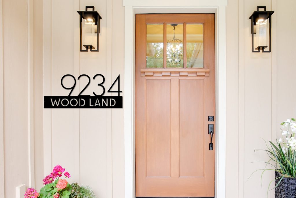 Enhance your front door decor with the trendy mid-century address sign. This house number sign is made up with 18 gauge steel which is durable and environment resistant. It will give the touch of elegance to your wall by adding this steel sign inside, outside or any place of your choice!
