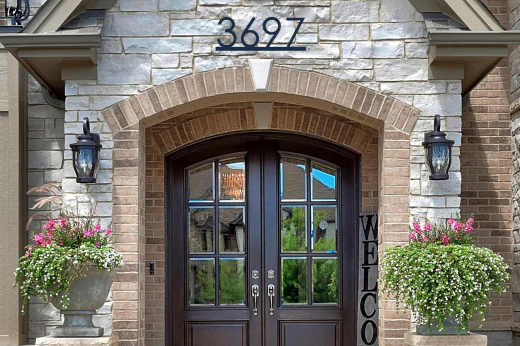 It is made with 16-gauge metal and is powder coated. With the powder coat, it is weather resistant. You can hang this by your front door, over your door, on your brick mailbox, or over your garage.