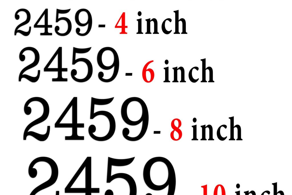 – The numbers are about (4, 6, 8 & 10) inches HEIGHT and the widths vary per number or letter. The height of the numbers and letters vary slightly due to font design.