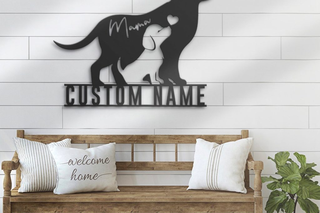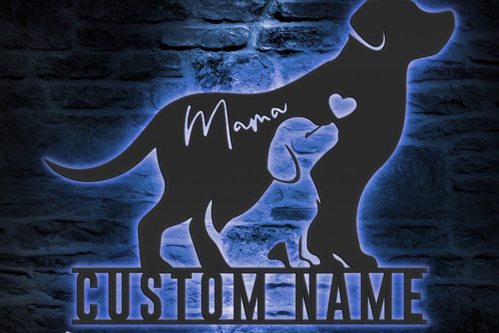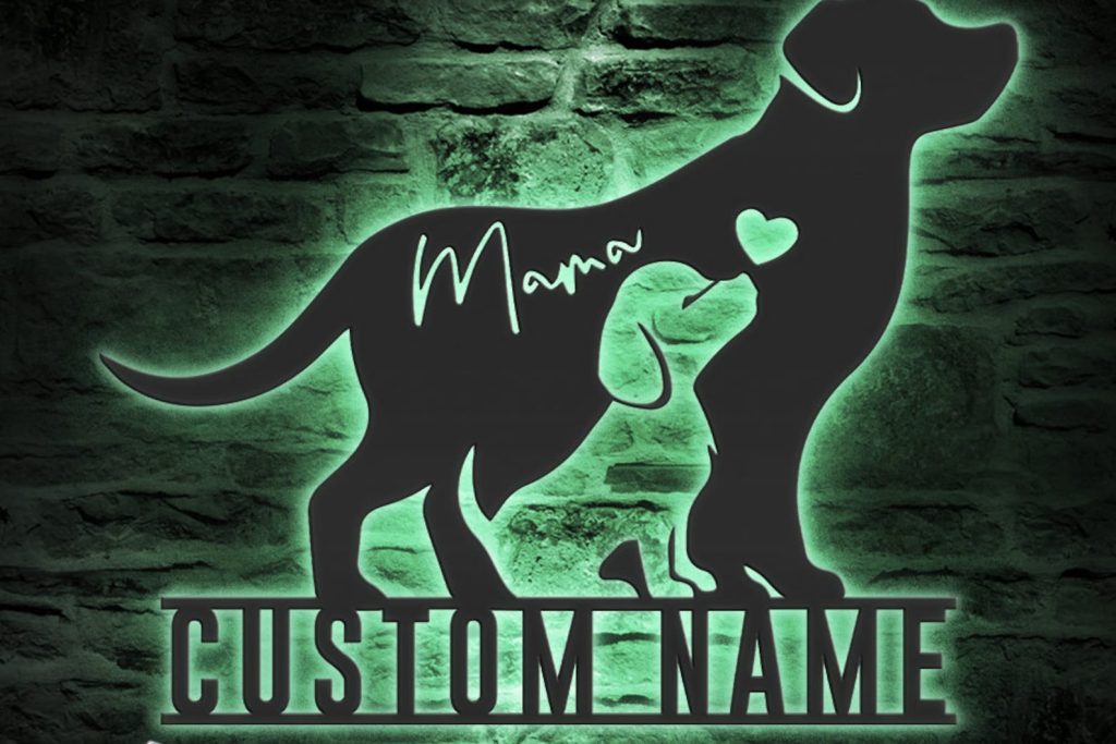 Be the first to review “Mom Baby Dog Metal Art: LED Light, Family Name Sign”