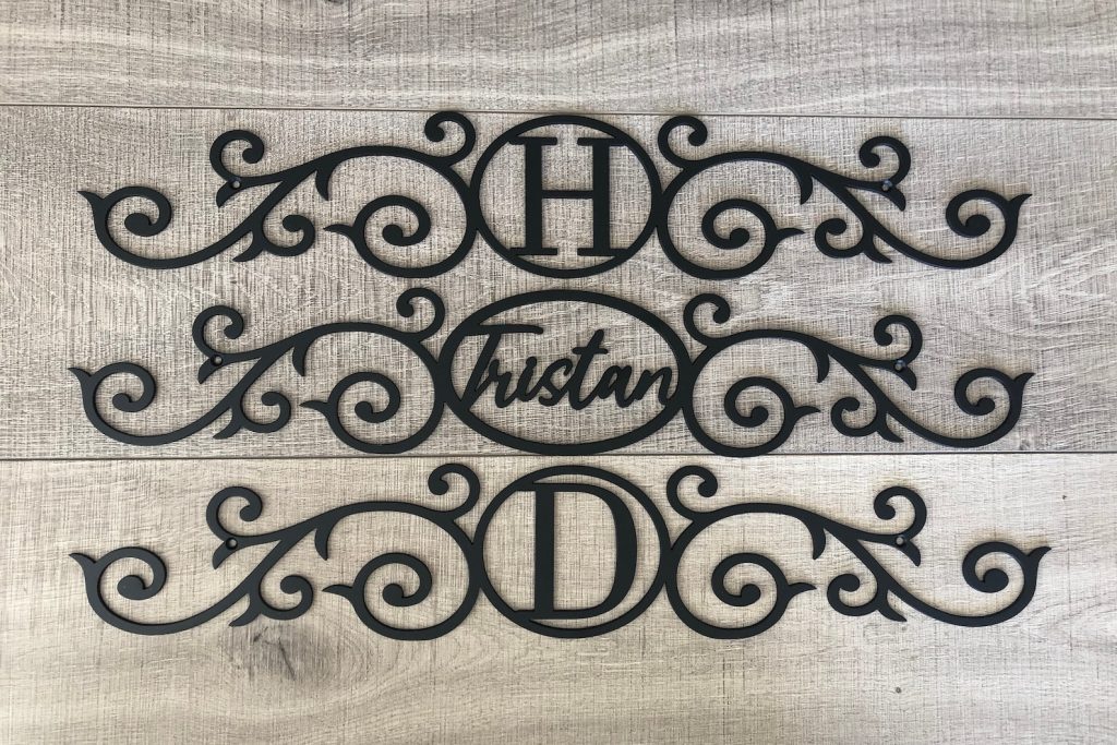 Monogram Metal Scroll Home Decor Sign