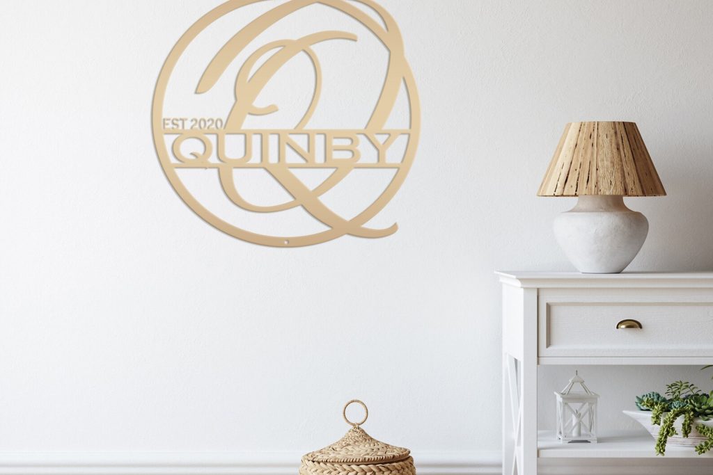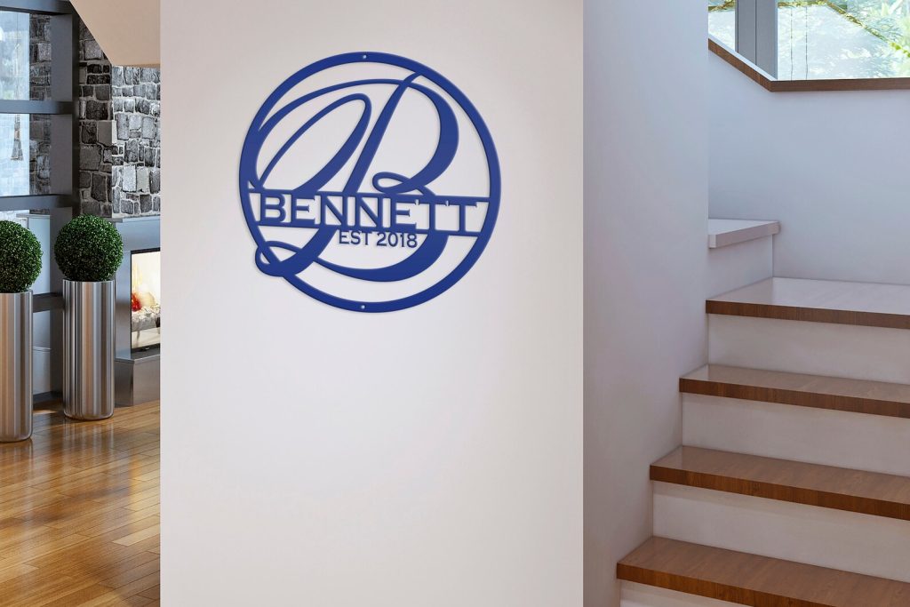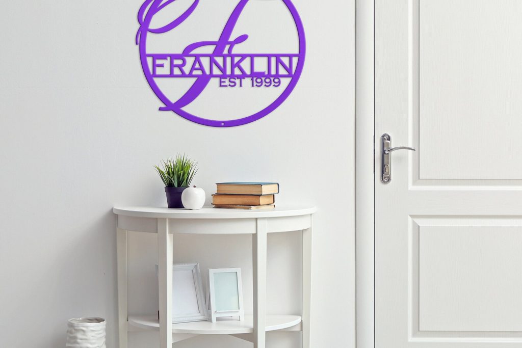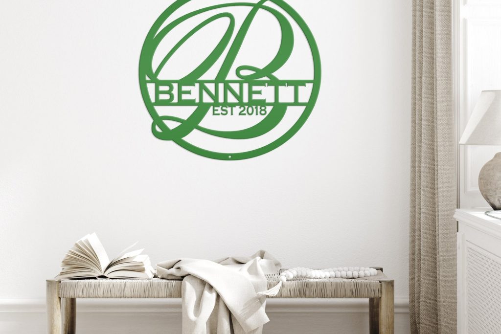 Add a touch of elegance and personalization to your home decor with our Metal Monogram Name Sign. With the option to include an established date, this custom wreath entry door hanger makes a perfect wedding or anniversary gift. Celebrate new beginnings or house closing with this thoughtful and unique present. Make a lasting impression with this one-of-a-kind piece that will instantly elevate any space.
