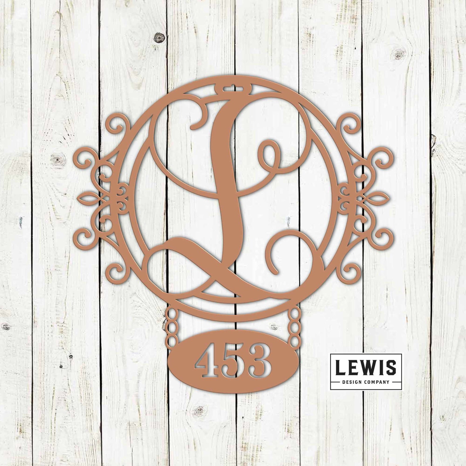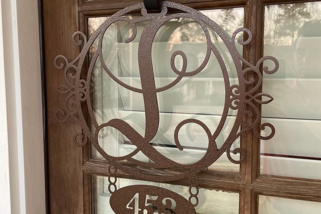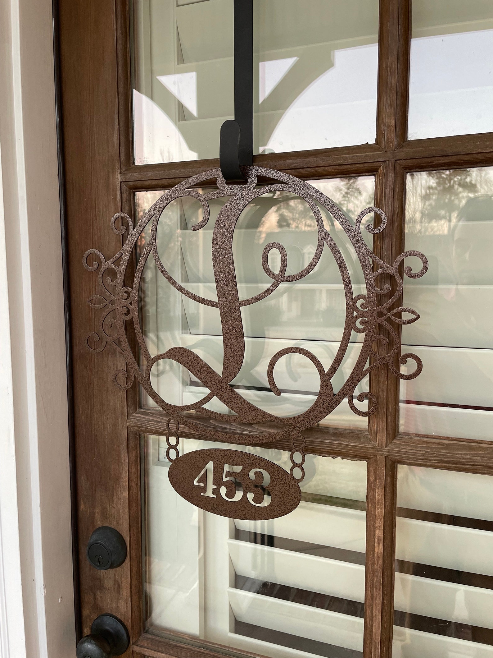 Monogram Wreath with Address – Custom Metal Door Hanger