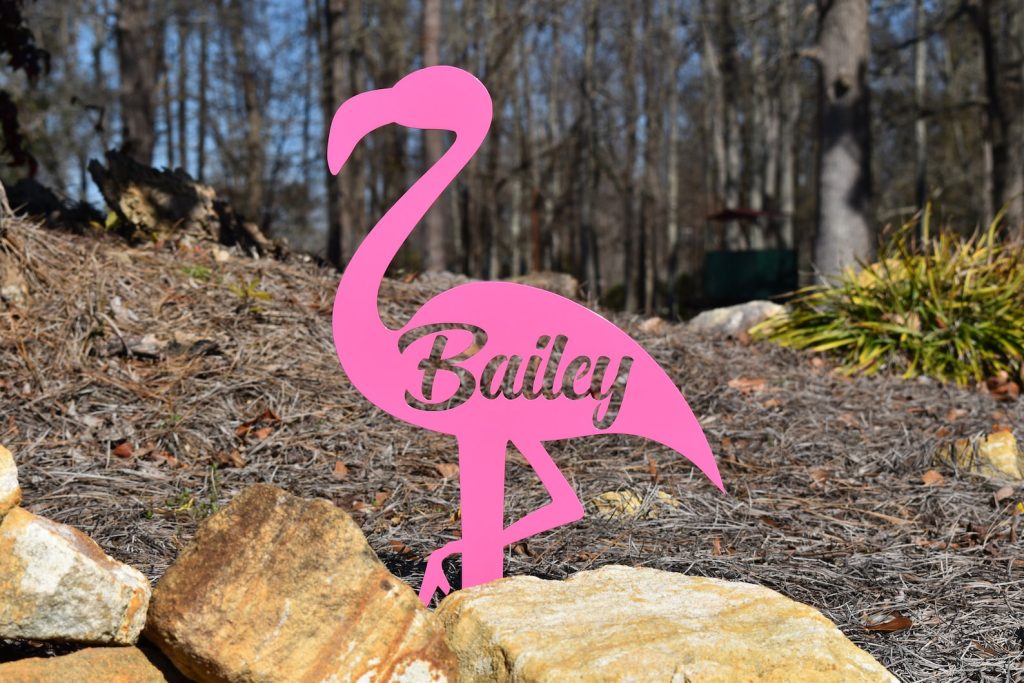 Monogrammed Flamingo Metal Beach Address Sign