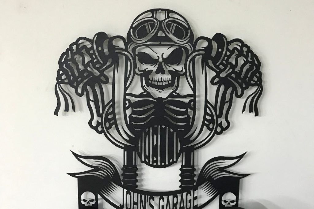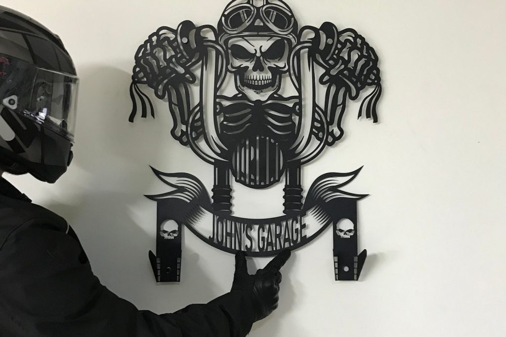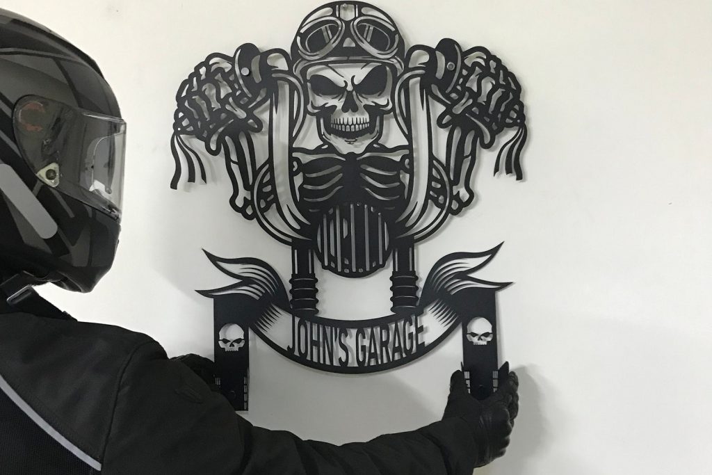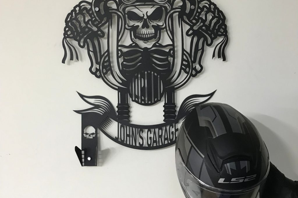 Be the first to review “Motorcycle Helmet Sign – Custom Metal Skull Holder”