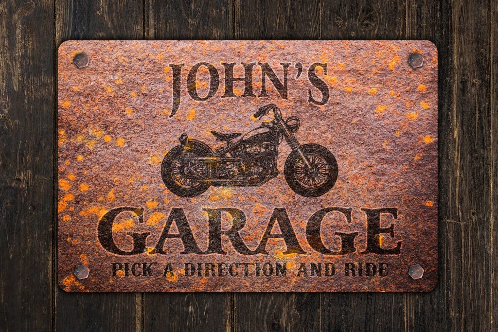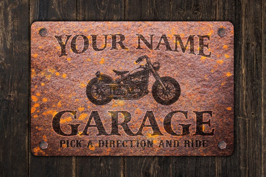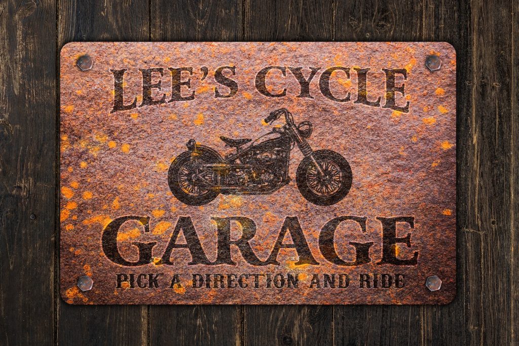 Motorcycle Sign – Custom Biker Garage, Personalized Metal Sign