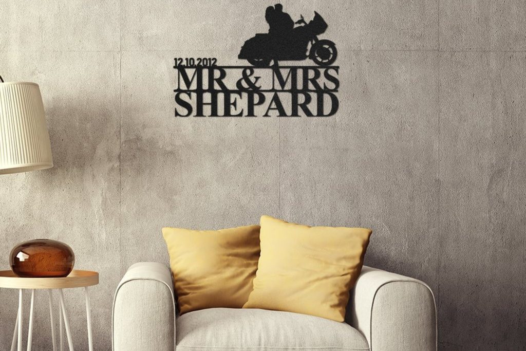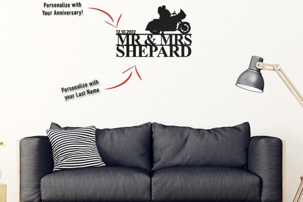Sweet Ride9;s laser-cut Happily Married Biker Couple Personalized Wall Art brings together your most significantly meaningful bond into a design that truly speaks from the heart, bringing incredible meaning to any wall it adorns.