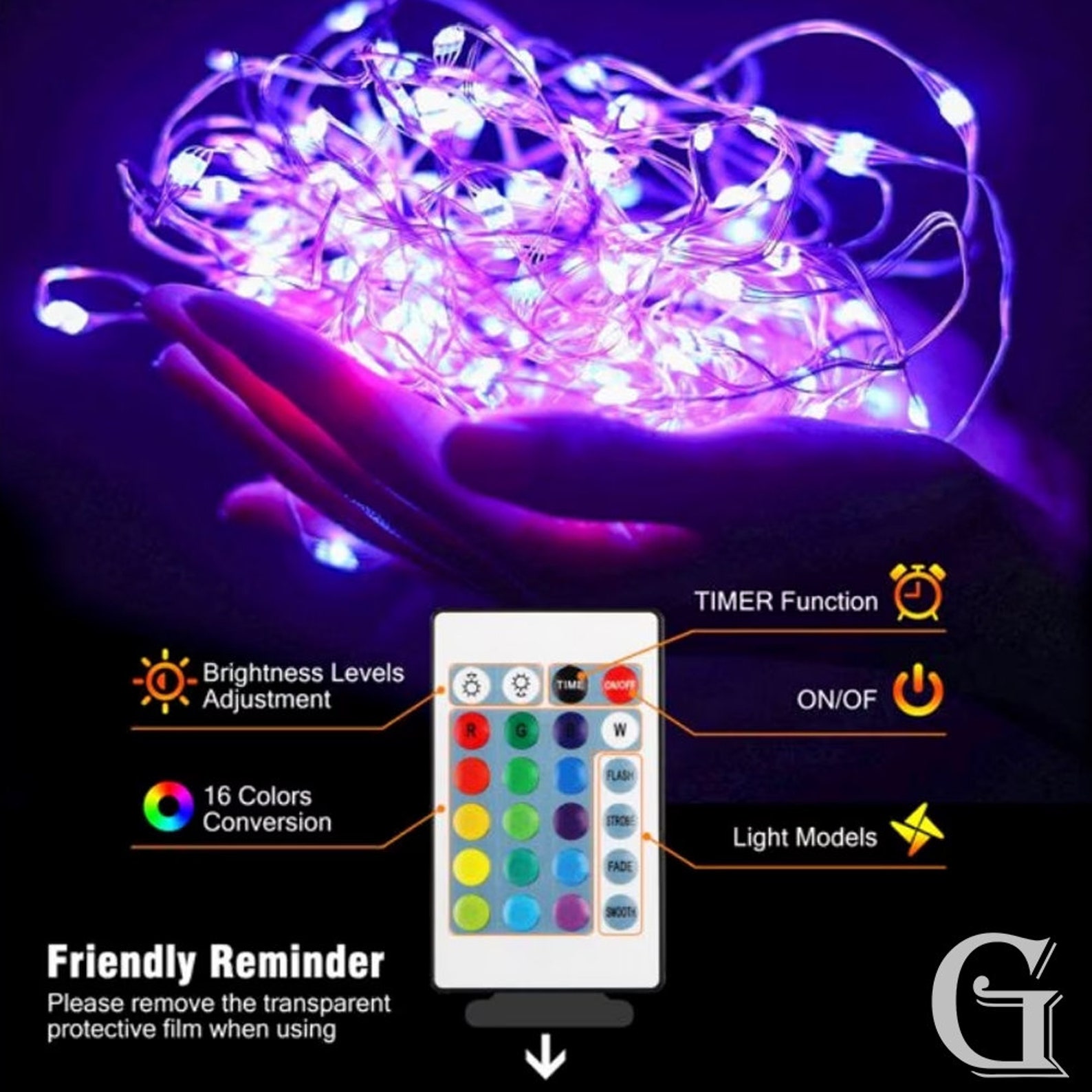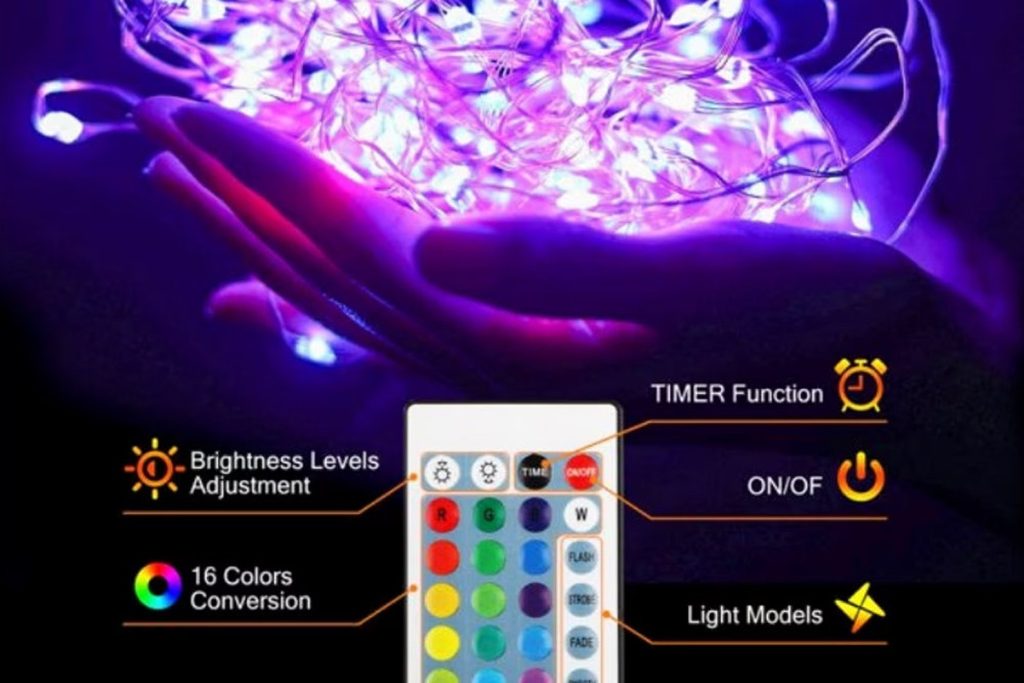 Remote control: You can use the remote to turn the lights on and off, change the color to one of 16 vibrant colors, adjust brightness, cycle through the colors and set a timer for 6 hours.