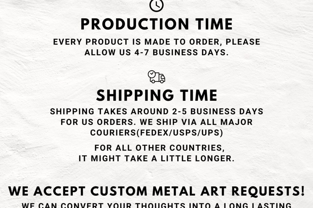 We ask for around 2 weeks but try to ship every order asap, and shipping time ranges around 3-5 business days in the US. We ship via all major carriers (FedEx, UPS, USPS).