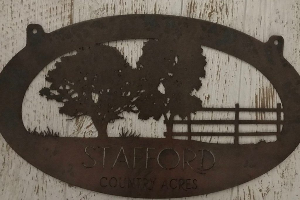 Made of 14 gauge metal . Makes a very attractive entrance sign.Incl with the price is customizing with your name.Our finish is a baked on powder coat for a very long lasting durable finish.
