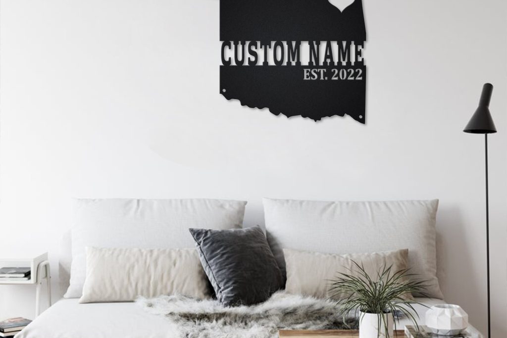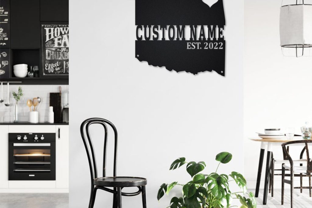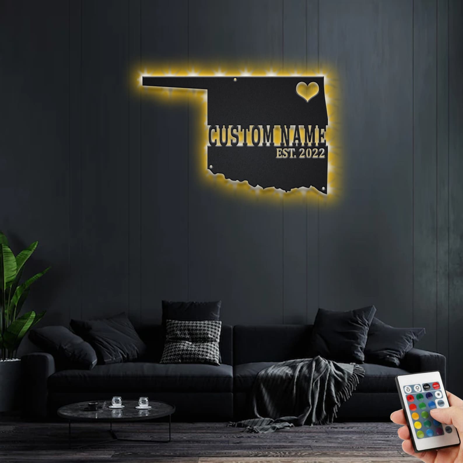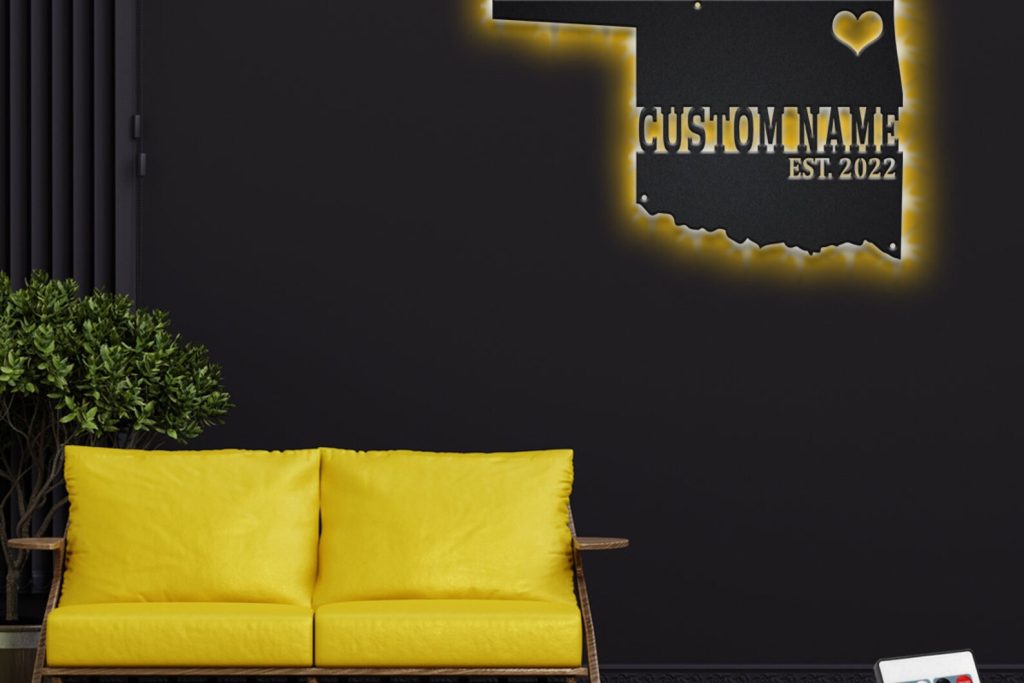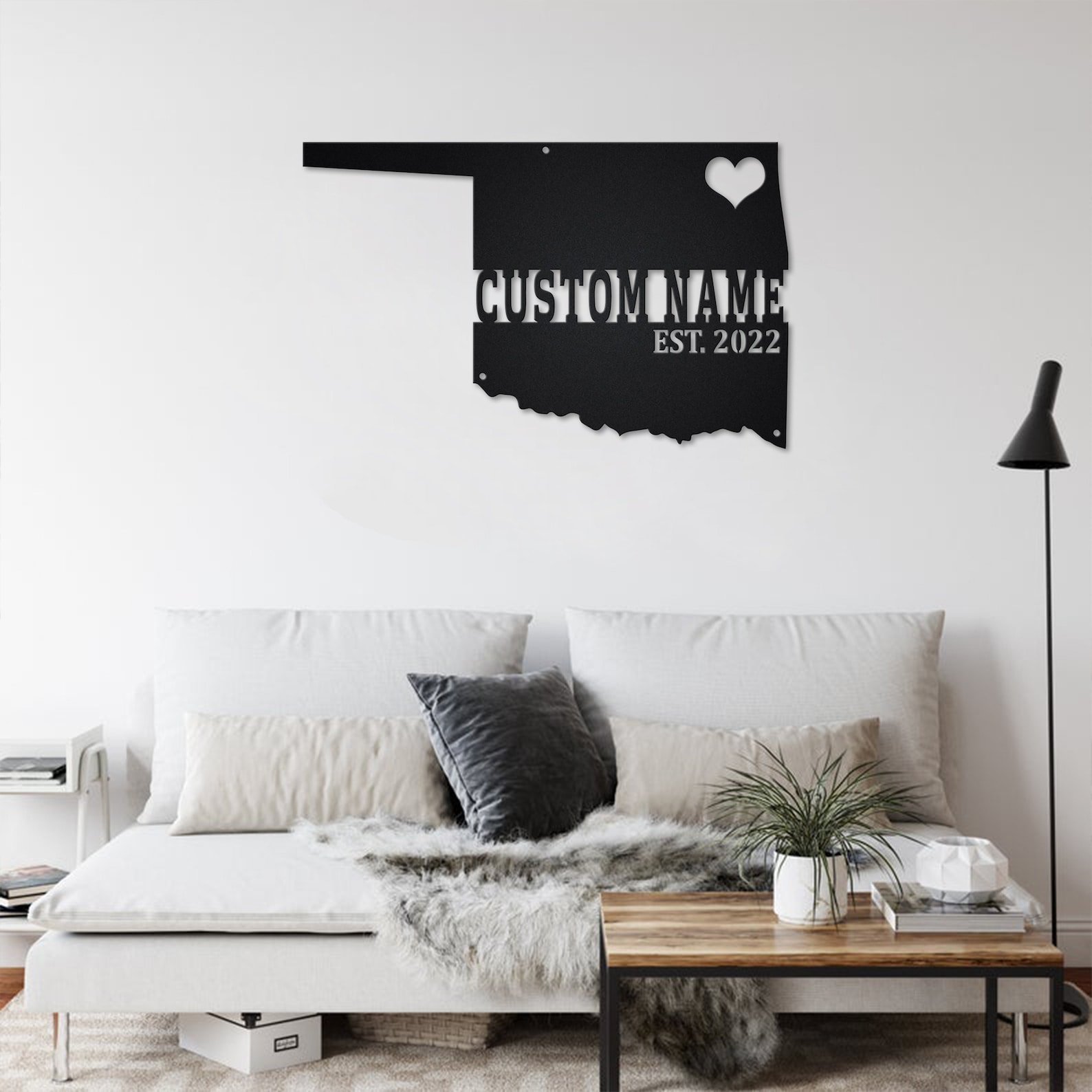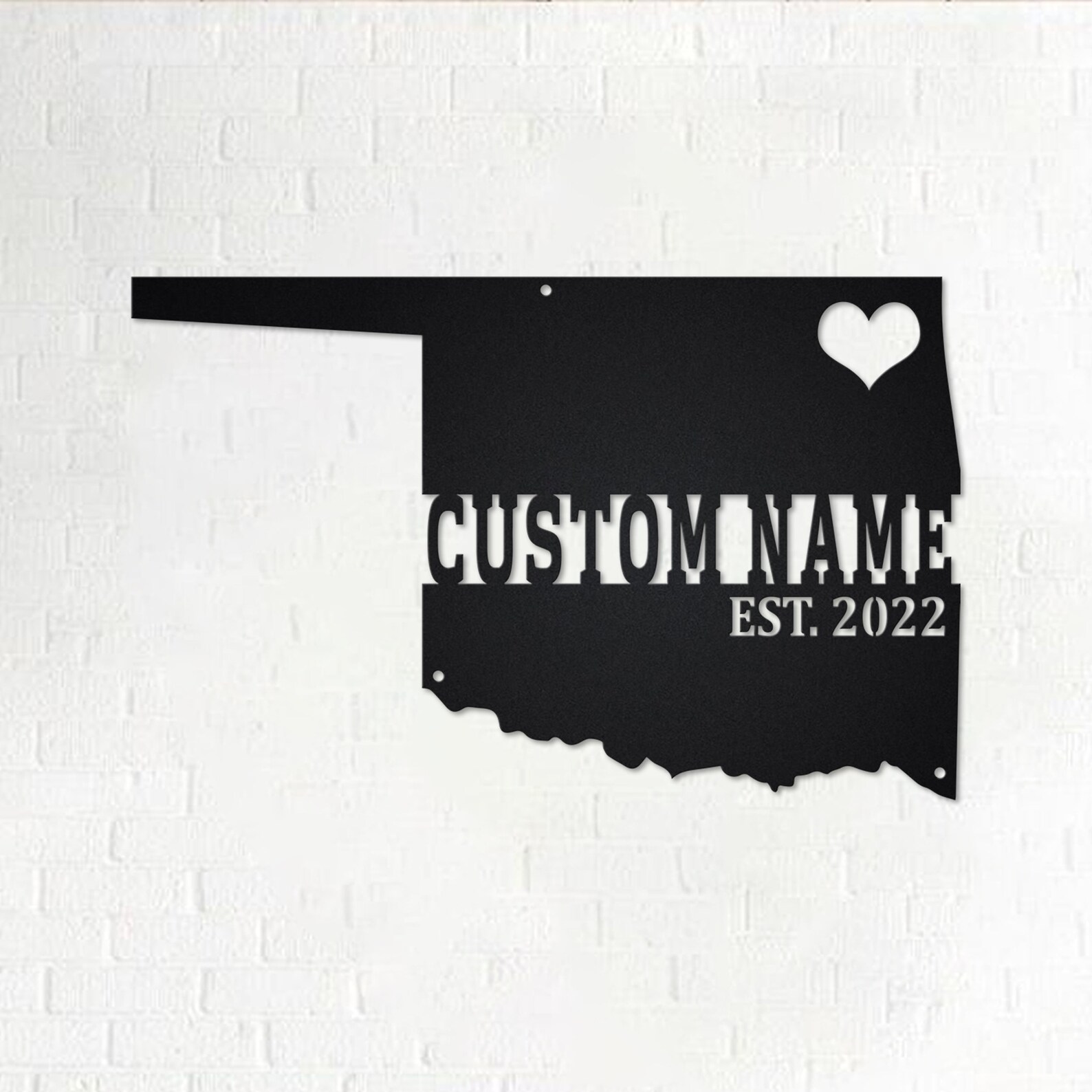 Oklahoma Map Metal Sign: Custom State Name Sign