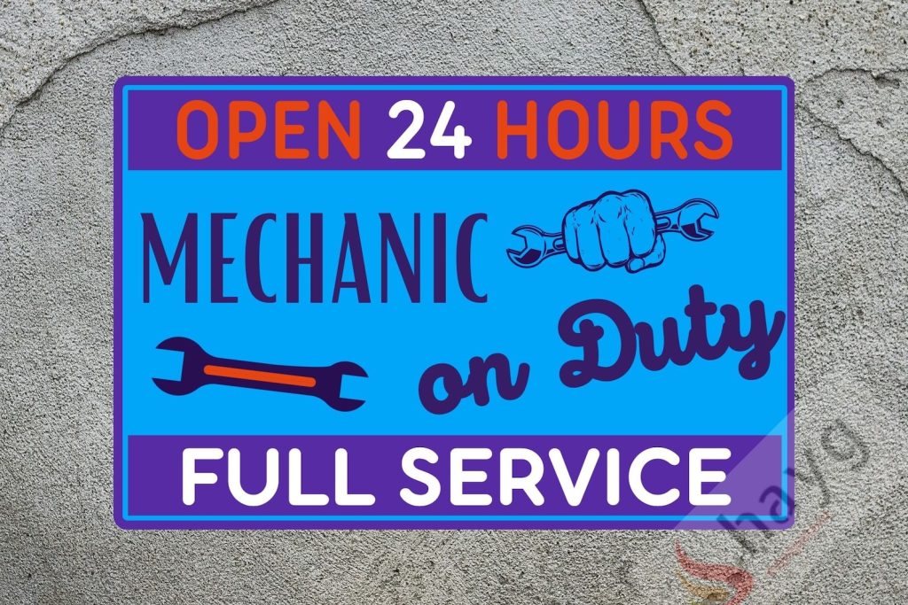 Open 24 Hours Mechanic on Duty Full Service Aluminum Sign, Decorative Metal Signage, Decor for Bedroom