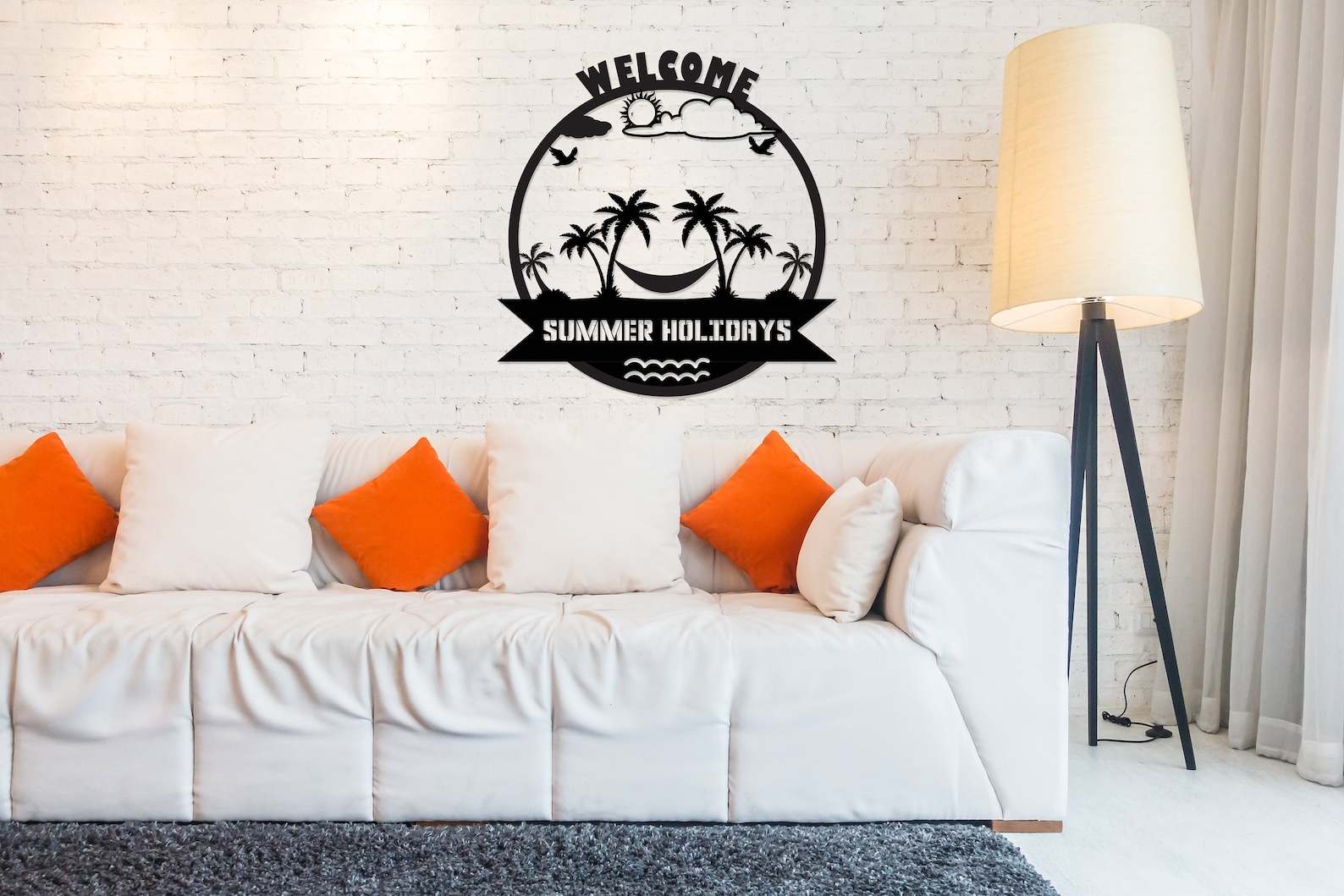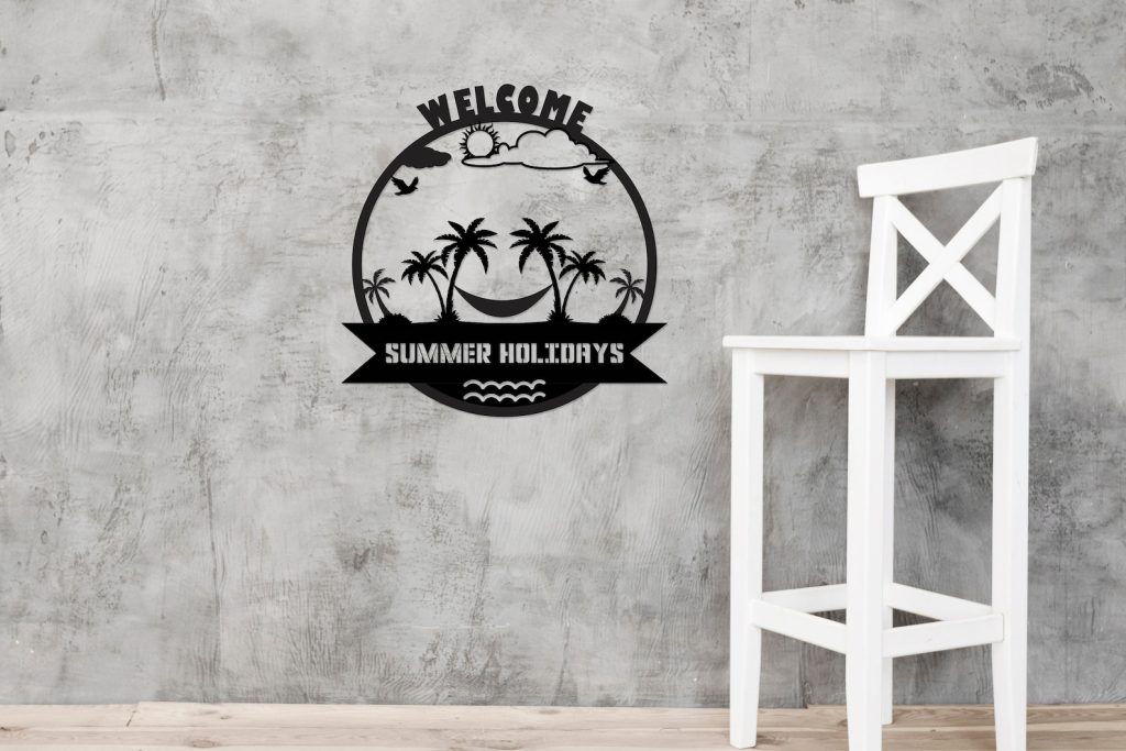 Be the first to review “Palm Tree Summer Metal Wall Art – Personalized Welcome Sign”