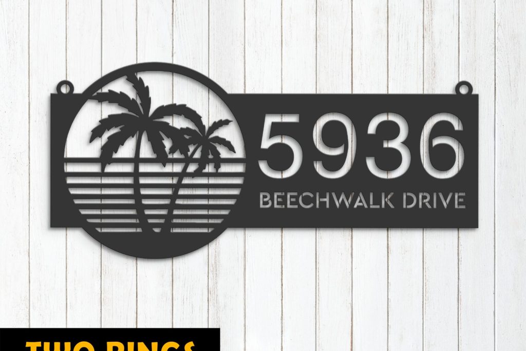 Be the first to review “Palm Tree Sunset Address Sign – Personal Metal Decor”