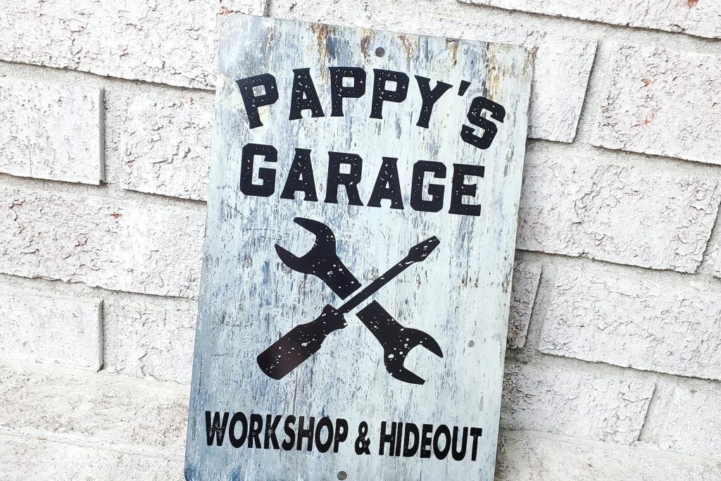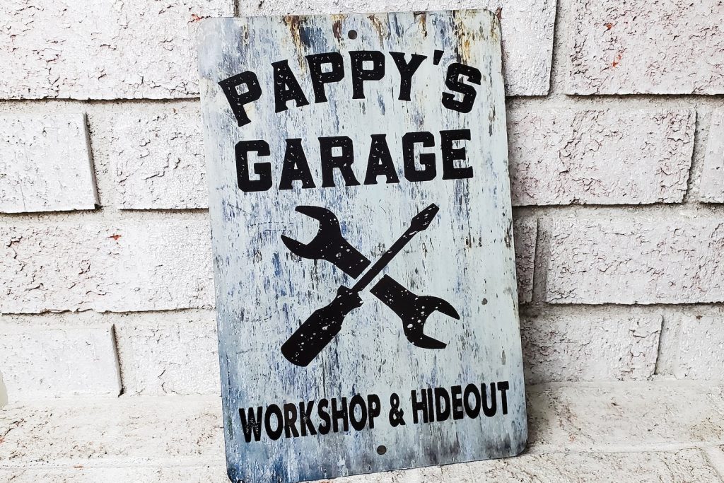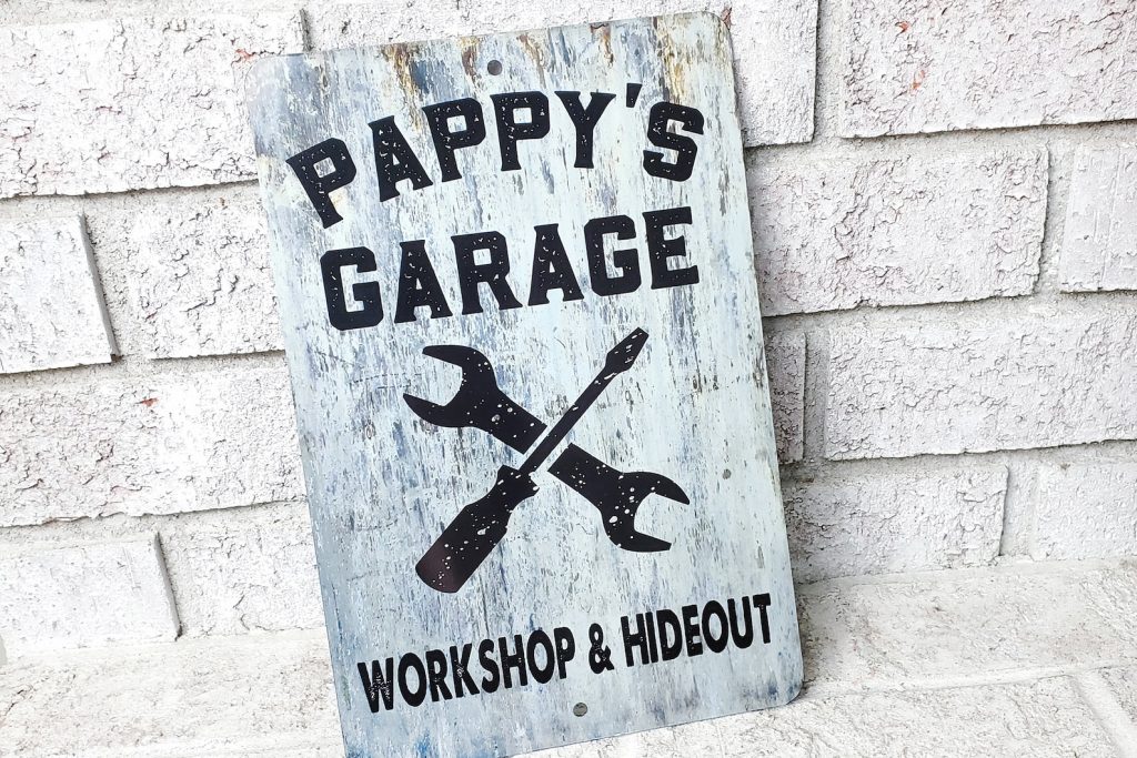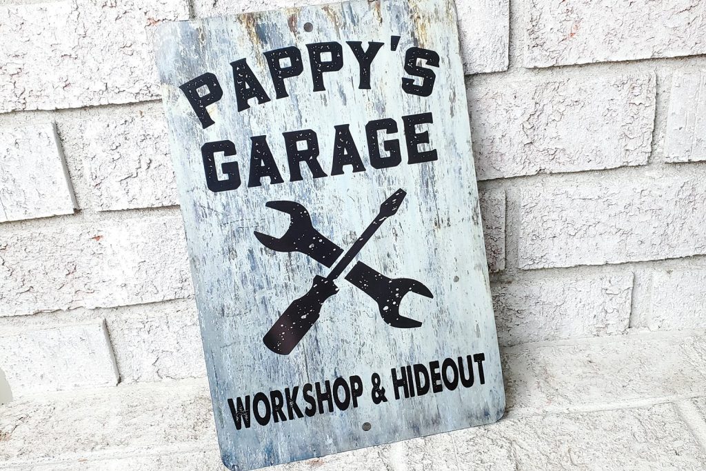 Pappy9;s Garage and Hideout, Pappy9;s garage metal Sign, Garage Gifts, man den, man cave, unique gifts for him, custom garage decor, grandpa