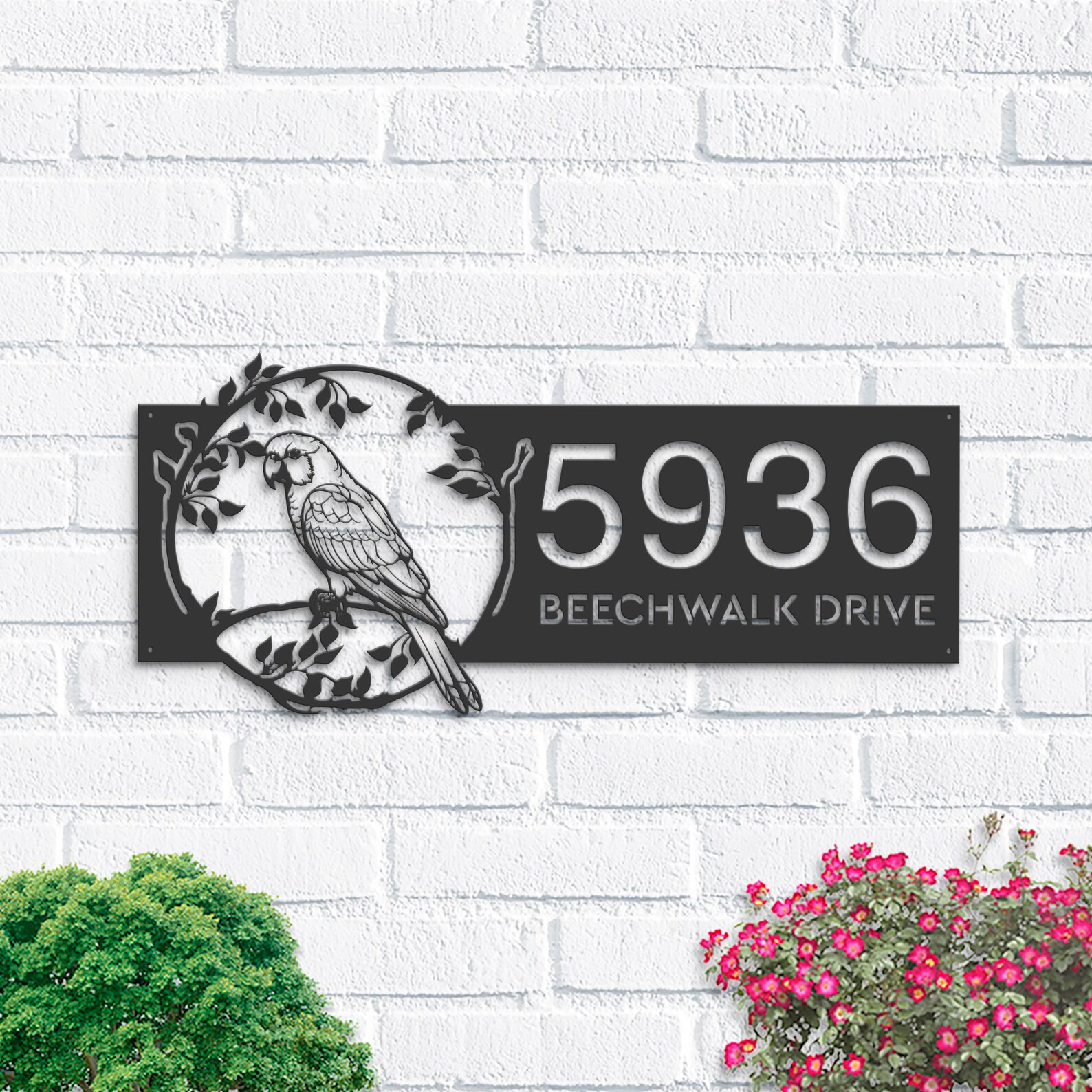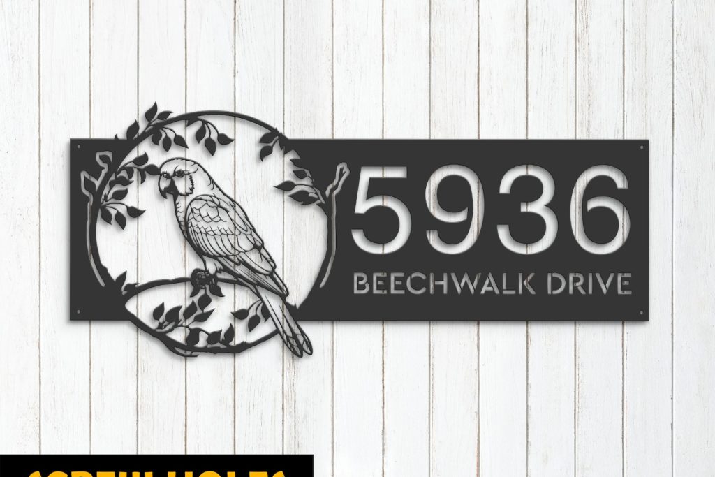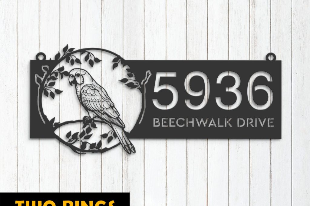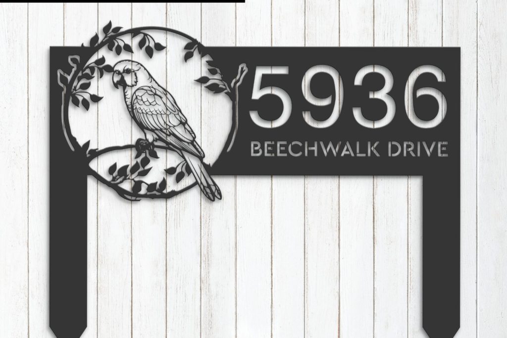 Parrot on Branch Address Sign – Personal Metal Bird Decor