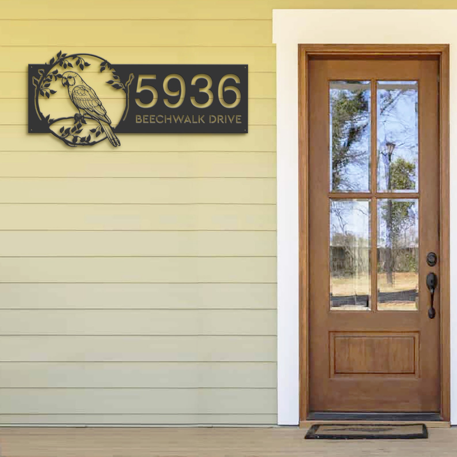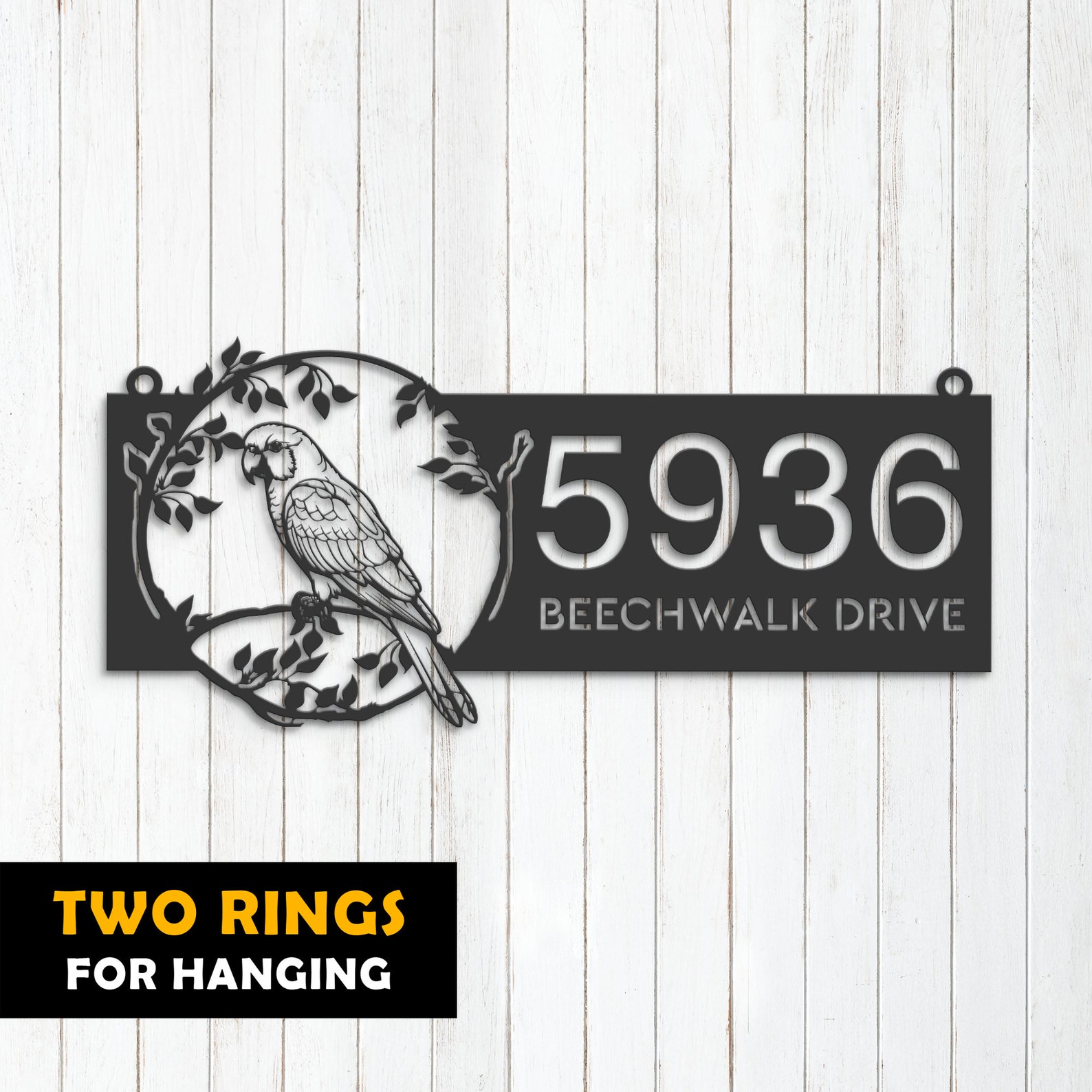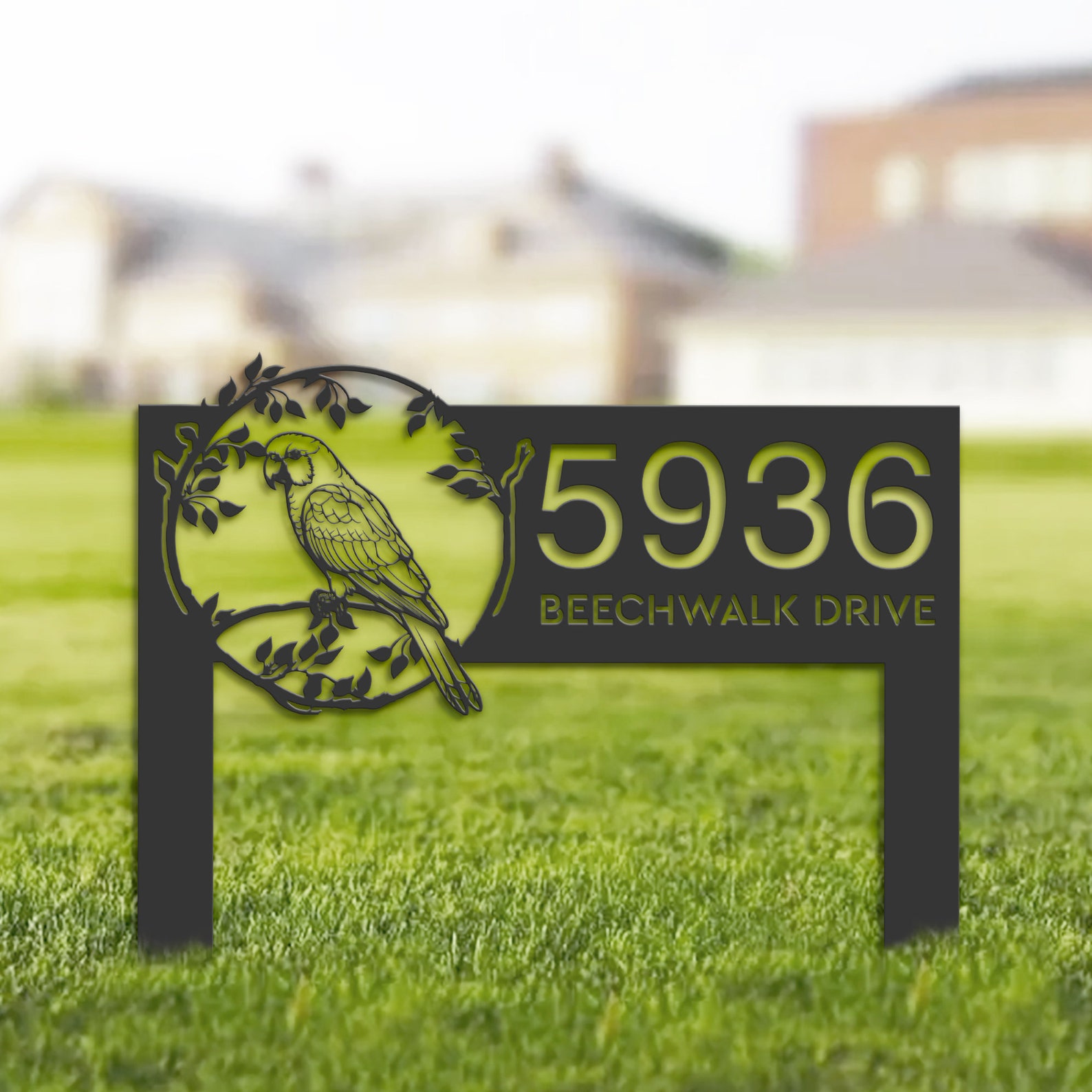 Parrot on Branch Address Sign – Personal Metal Bird Decor