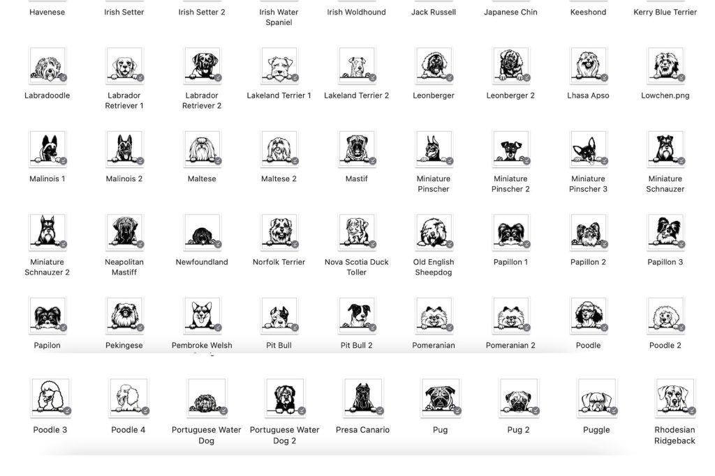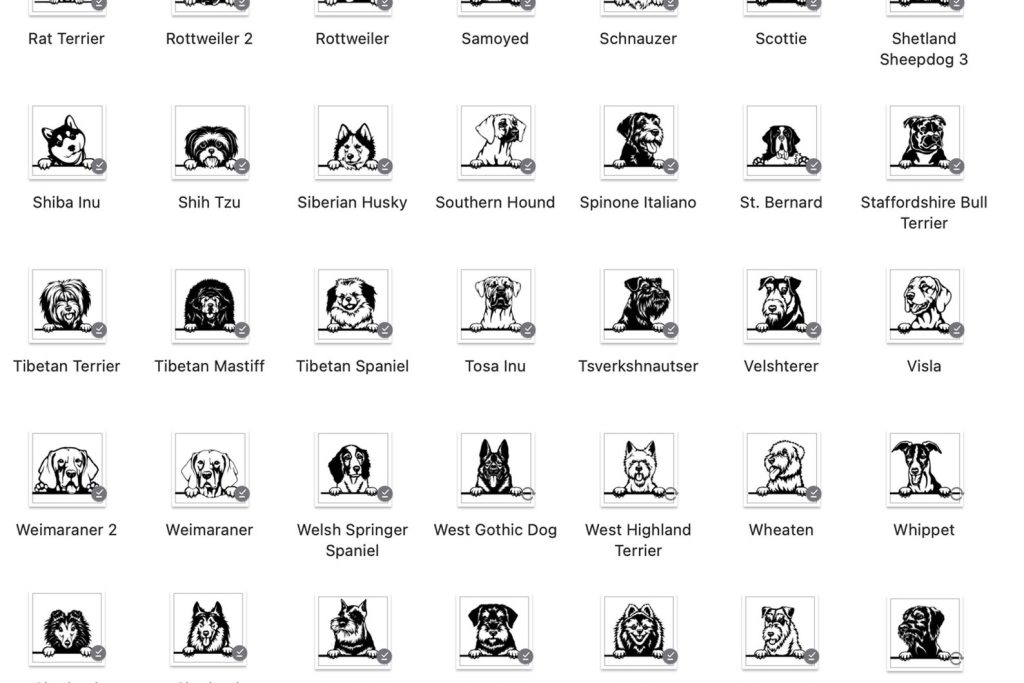 tFirst, browse through the images and locate the section labeled A-B, C-G, H-P, or R-Y depending on the breed of your dog.