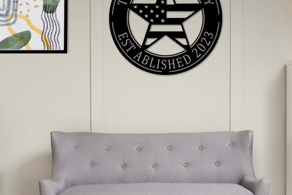Pentagram USA Flag Metal Family Sign
