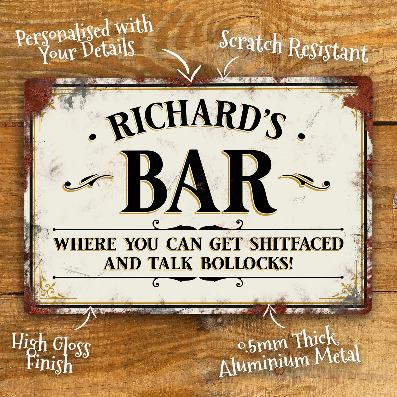 Personalised Home Garden Bar Pub Sign Metal Wall Door Funny Lounge Accessory Vintage Retro Plaque Waterproof Aluminium 200mm x 305mm