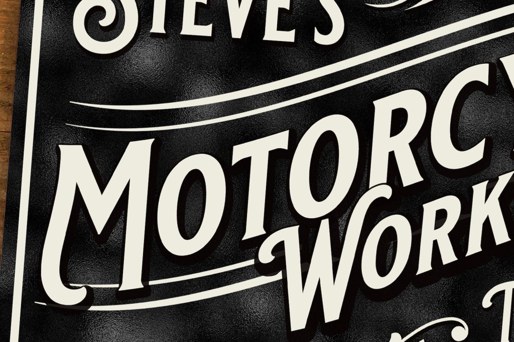This Vintage style metal Motorcycle Workshop sign is a great addition to any Garage or Shed. Designed in Retro Classic Style, the sign is made from aluminium metal and is printed using dye sublimation inks which makes it completely waterproof. The design has been designed with an embossed effect. This is not real embossing but an effect within the artwork. The actual sign is flat.