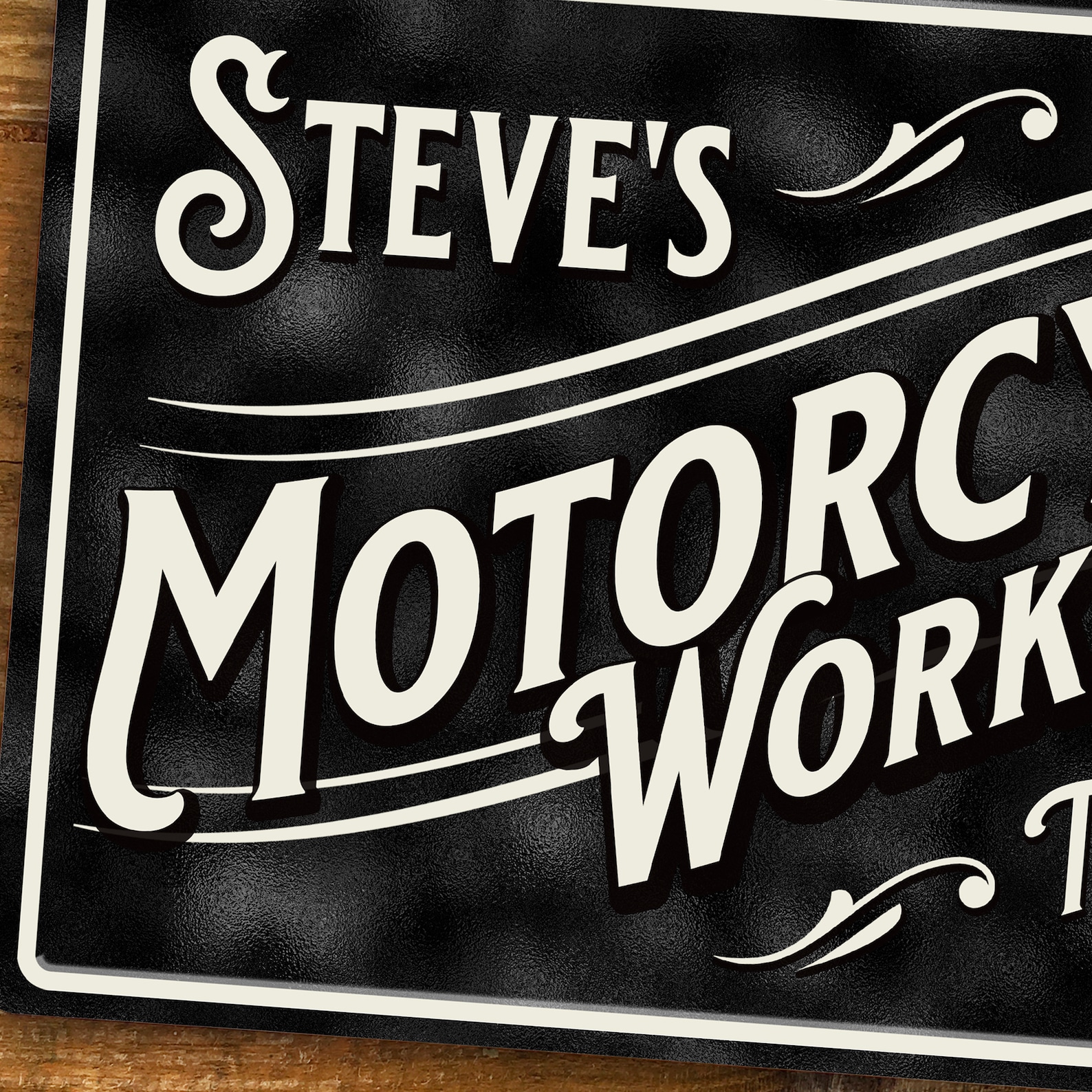 Personalised Motorcycle Workshop Sign Metal Wall Door Decor Motorbike Accessory Garage Shed Vintage Retro Tin Plaque Aluminium 200mm x 305mm