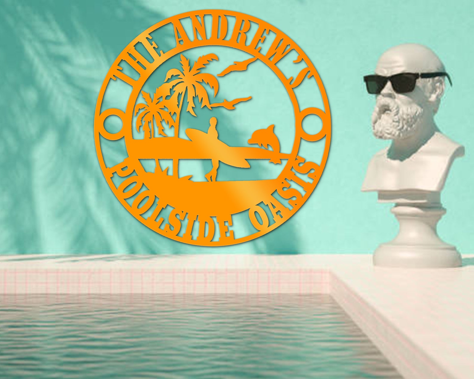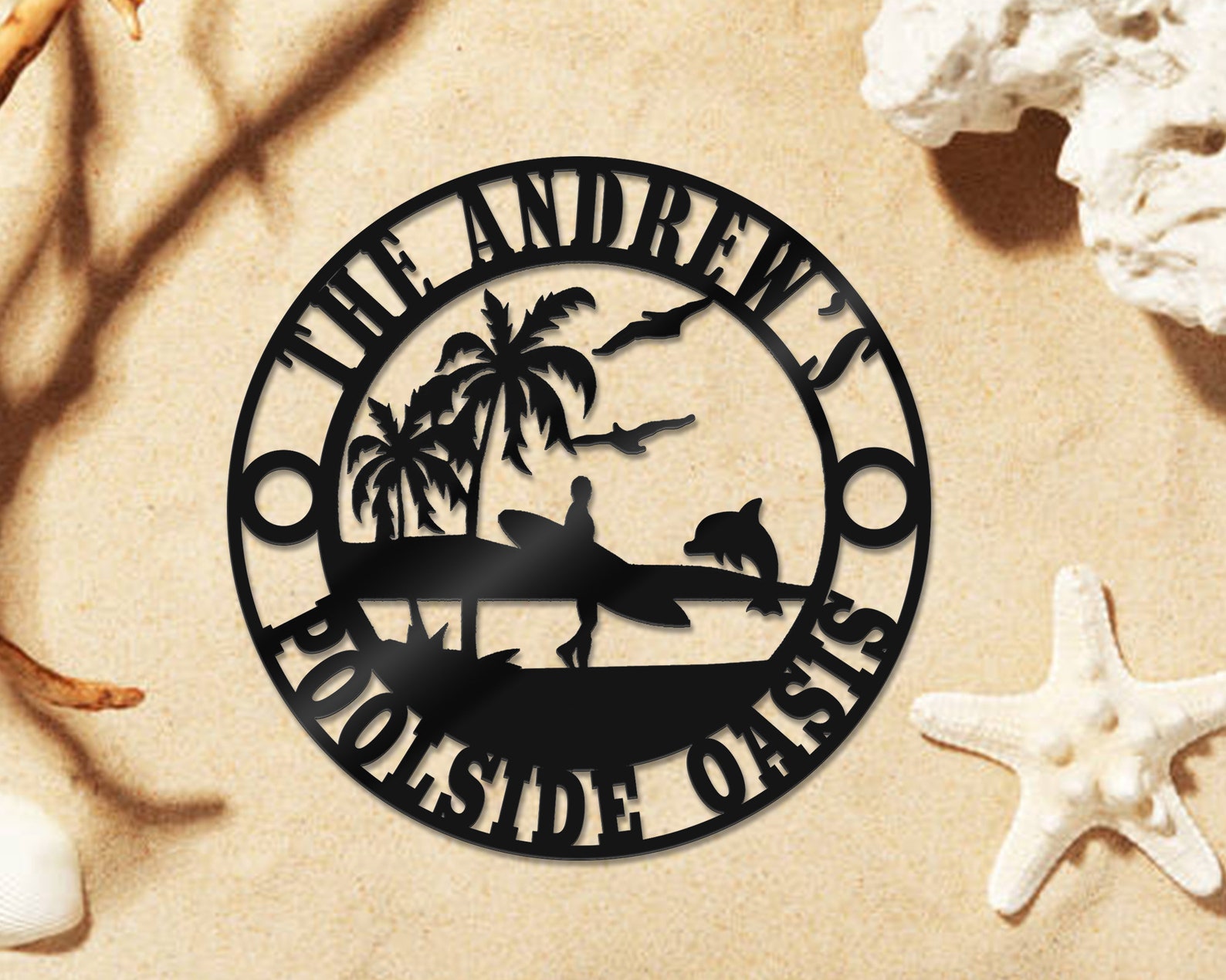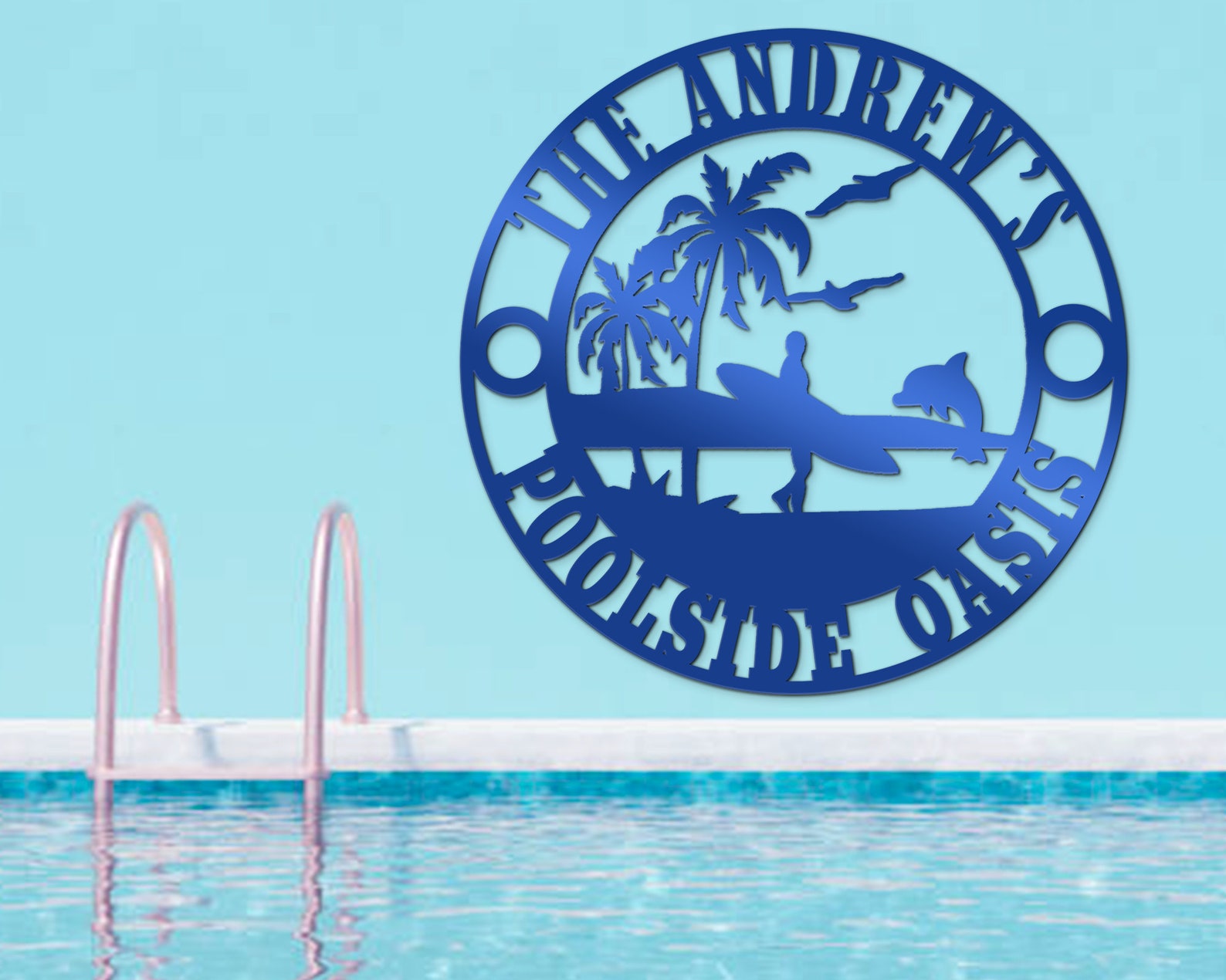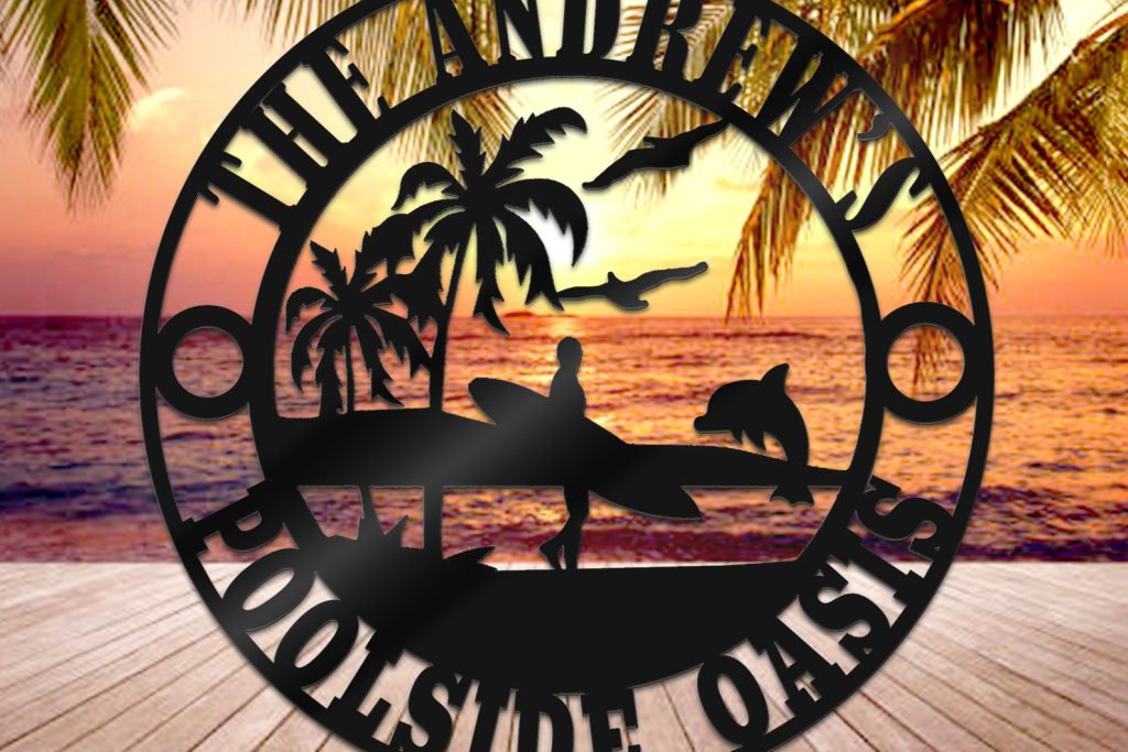 Personalised Poolside Metal Sign – Tiki Bar, Beach House, Swimming Patio Decor