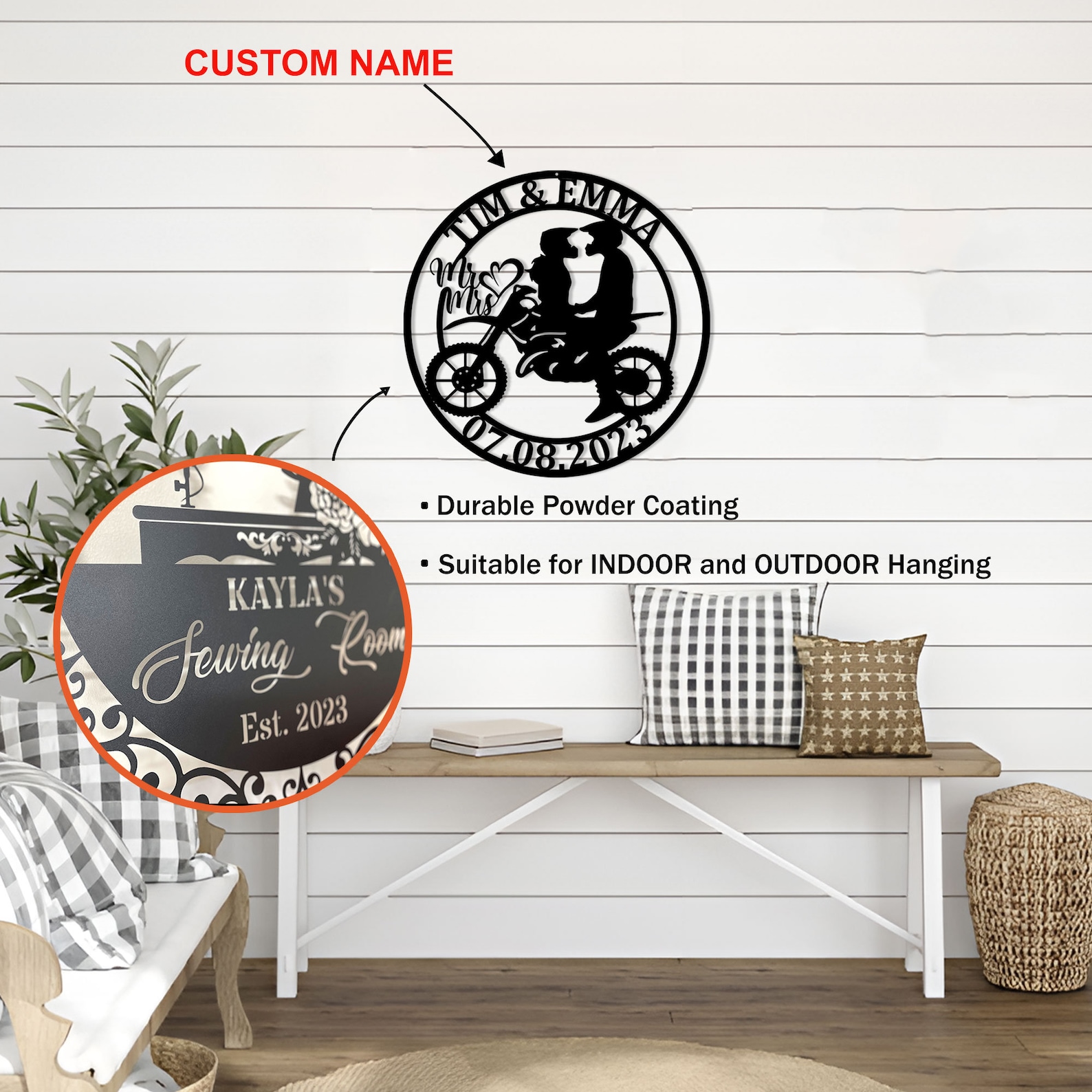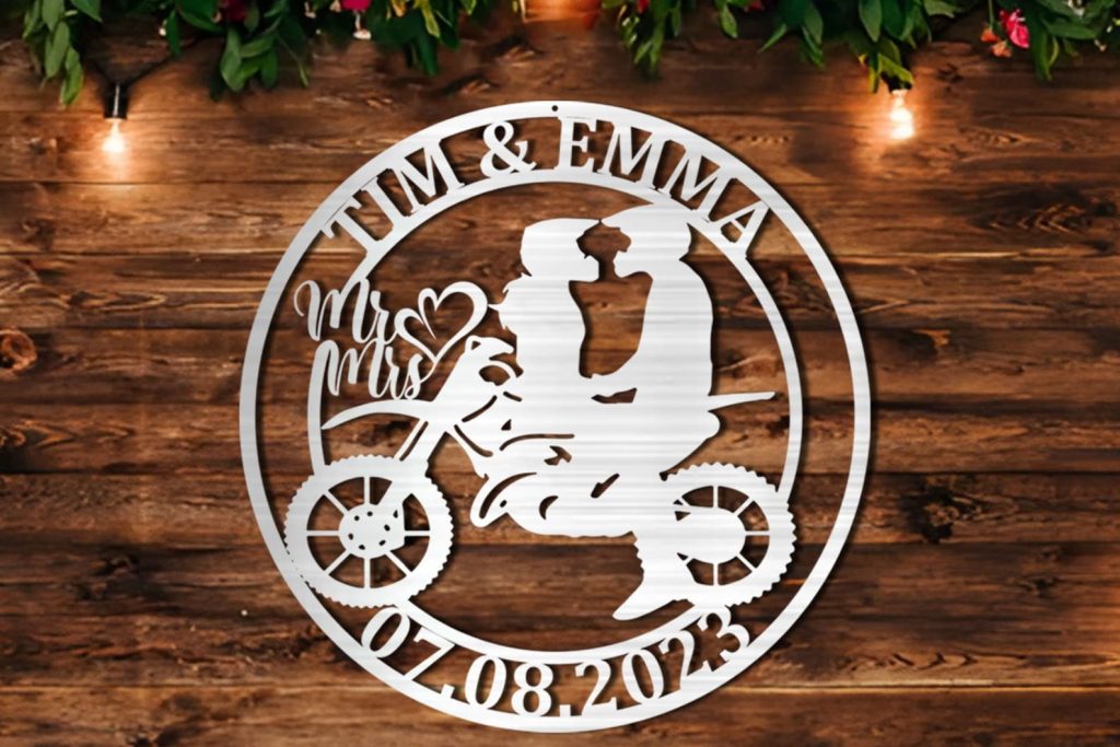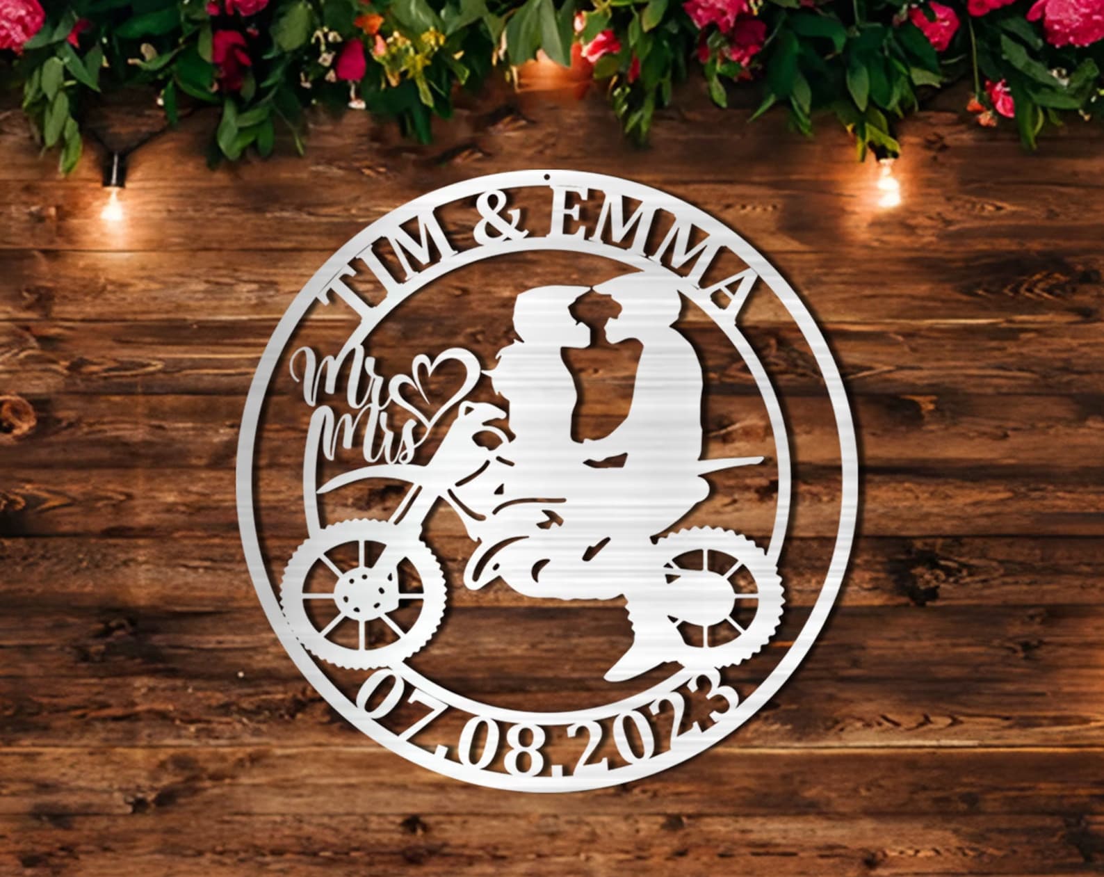 Personalize Wedding Gift Motorcycle,Biker Couple Metal Wall Art Wedding,Sign for Couple,Anniversary Gift,Biker Couple Gift,Motorcycle Metal Sign