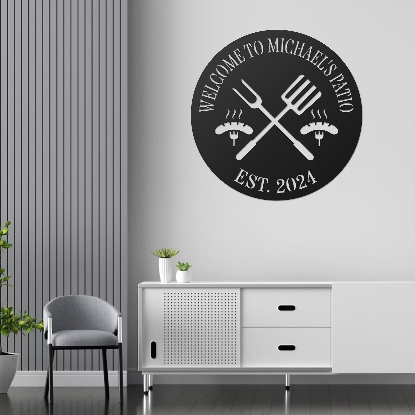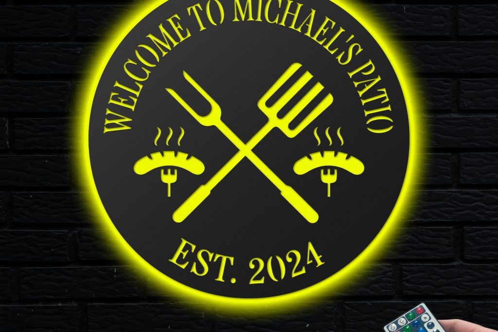 Be the first to review “Personalized Backyard Patio Grill Metal Wall Art – LED Light”