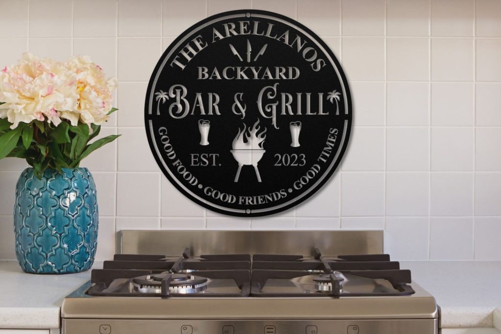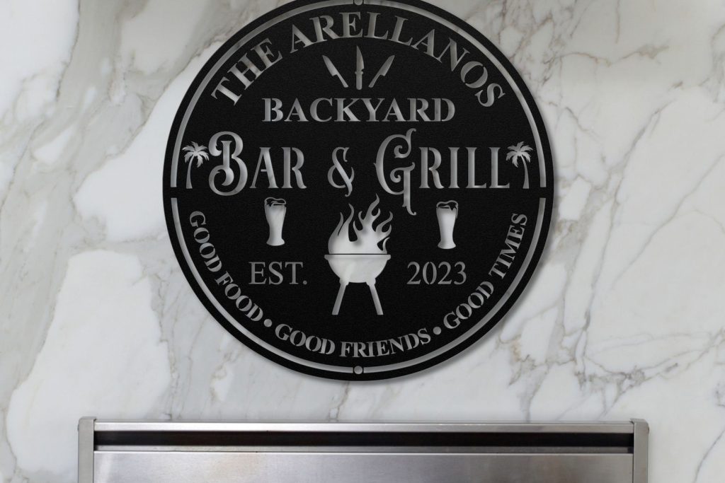 Our custom metal sign is made from High Quality 18 Gauge Steel, durable metal designed to last for years indoors and outdoors. With its eye-catching design featuring a BBQ grill and personalized text, it will make a statement and become a cherished keepsake.