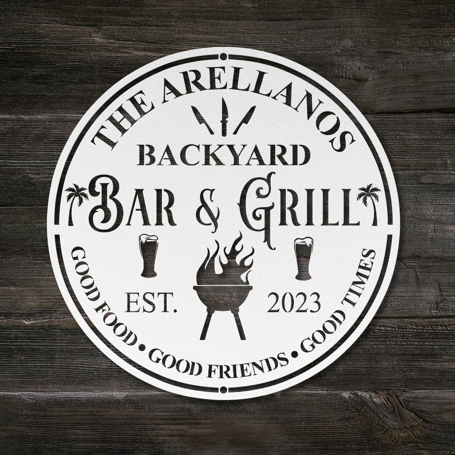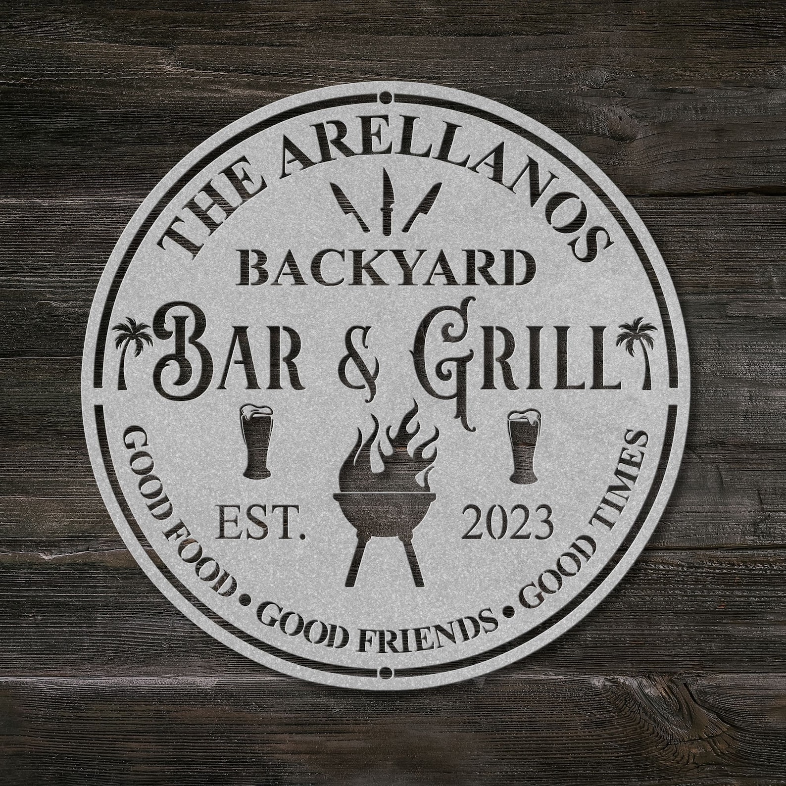 Personalize your Bar and Grill Metal Sign with a custom name and established year, making it a truly unique and memorable gift for weddings, anniversaries, housewarmings, or any special occasion.