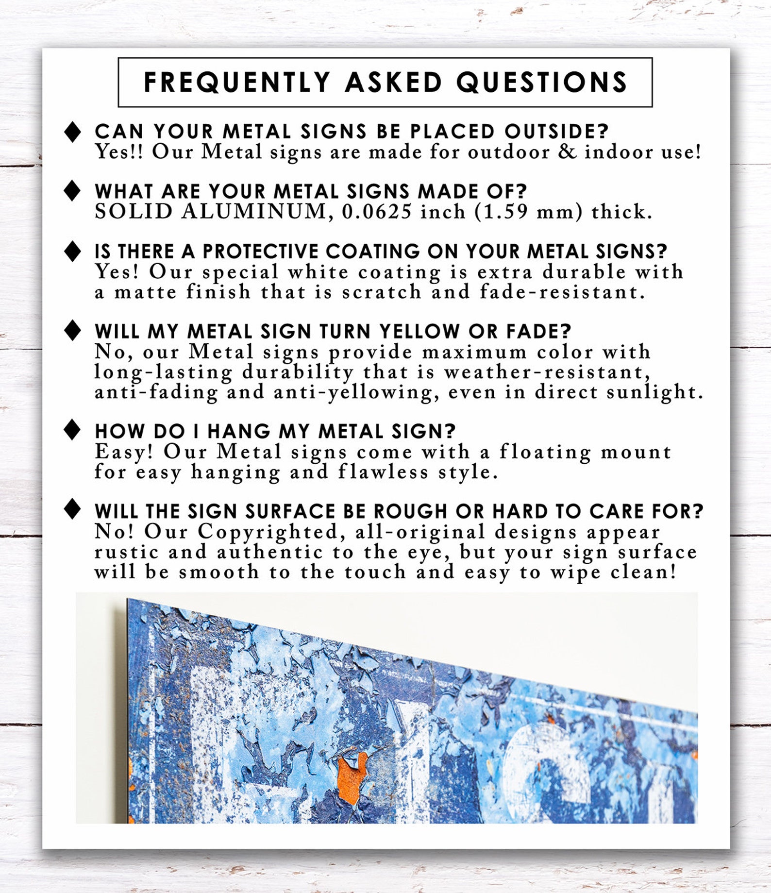 CARE and MOUNTING: Metal prints are perfect for indoor and outdoor use, scratch-resistant, and weather-resistant, with a frameless floating mount design for a flawless look. Our metal signs come ready-to-hang with a bracket pre-installed on the backside. Cleaning is