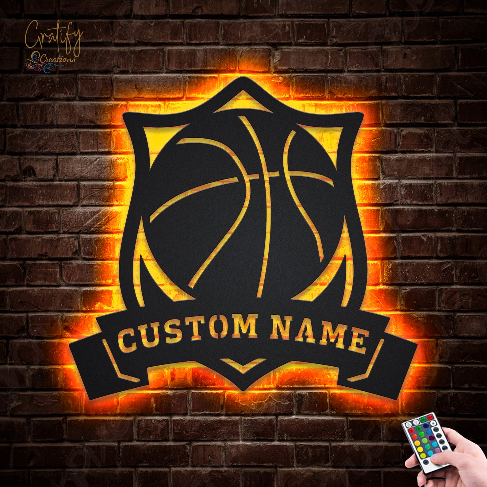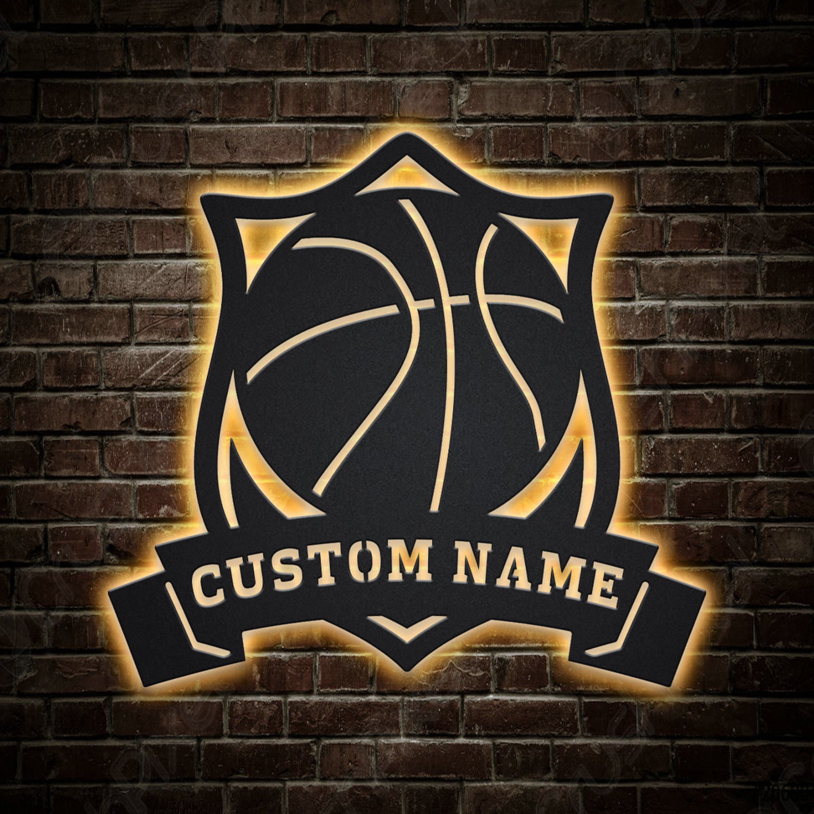 Showcase your love for basketball with this stunning custom basketball monogram metal sign with LED lights. This personalized basketball metal wall art is the perfect way to add a touch of personality and style to your home or office. The LED lights make it even more eye-catching, and it9;s sure to be a conversation starter among your friends and family.