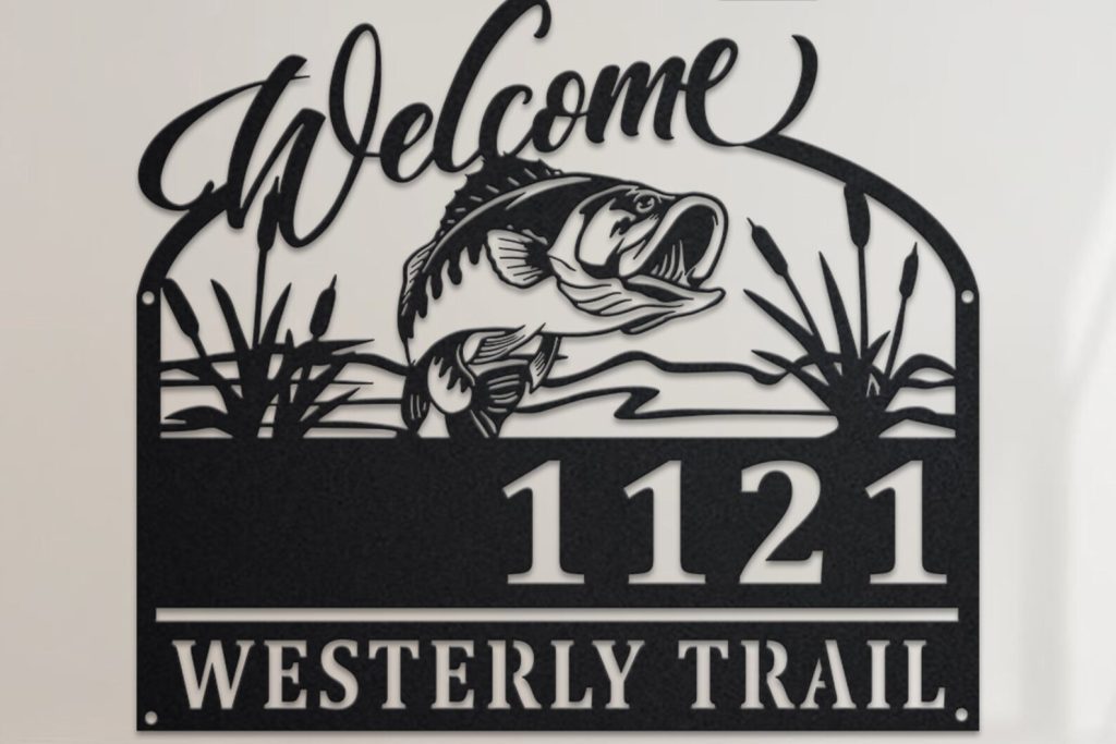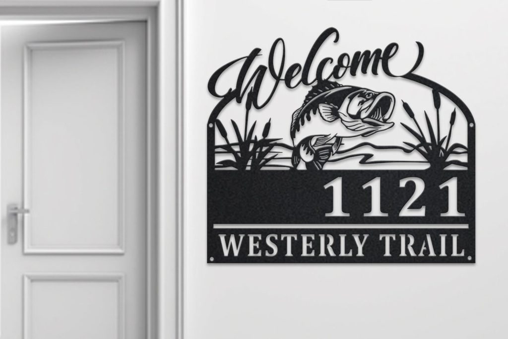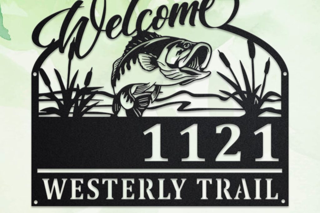 Personalized Bass Fishing Metal Address Sign
