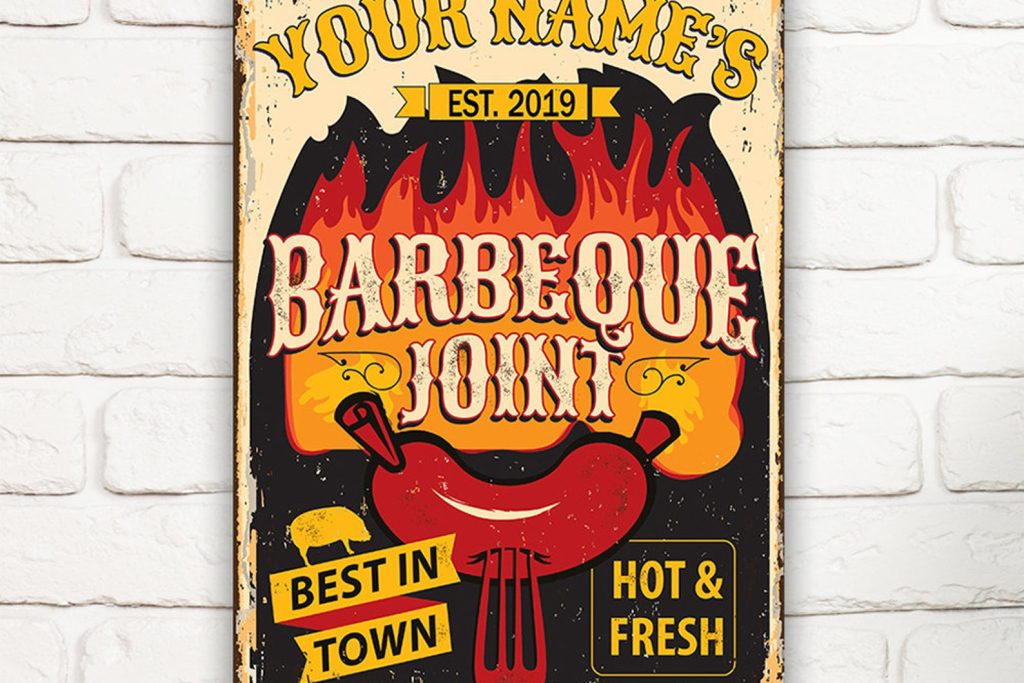 Personalized Metal Sign – BBQ Joint Metal Sign-8" x 12" or 12" x 18" Use Indoor/Outdoor – Great Grill and Barbecue Restaurant Decor and Gift