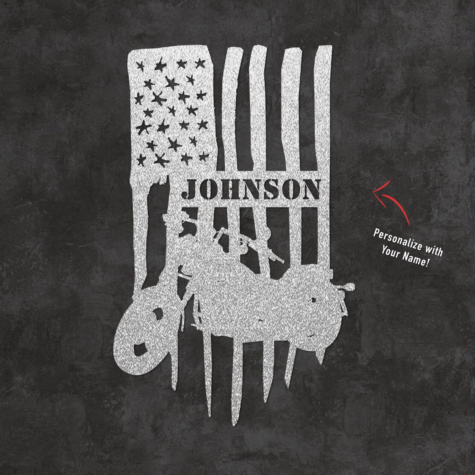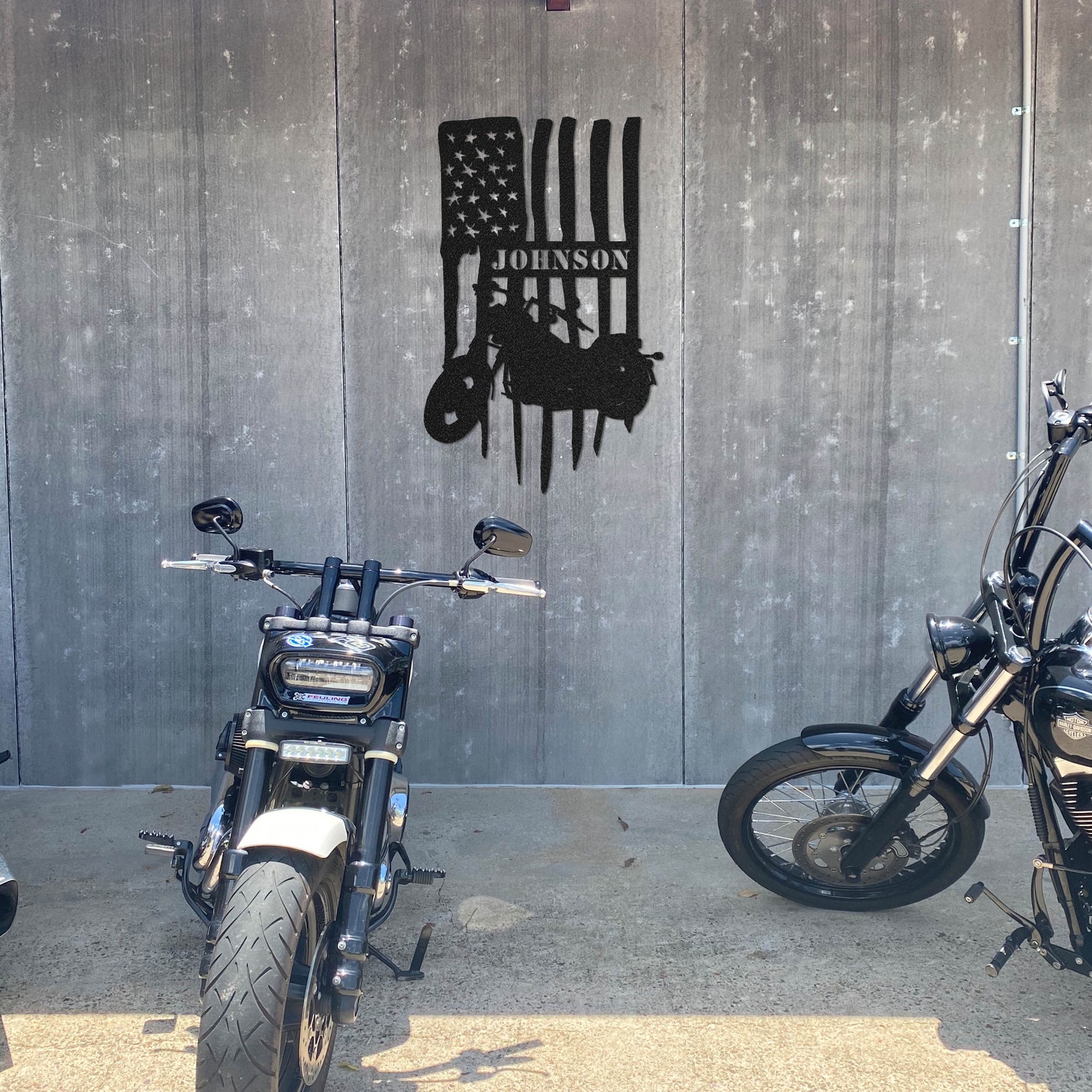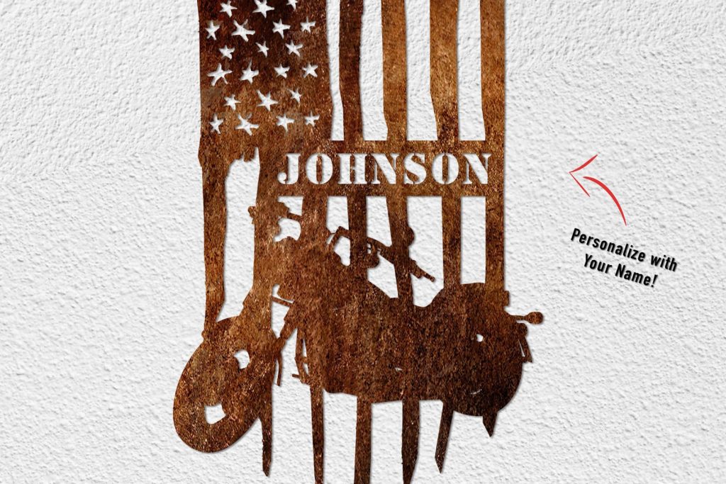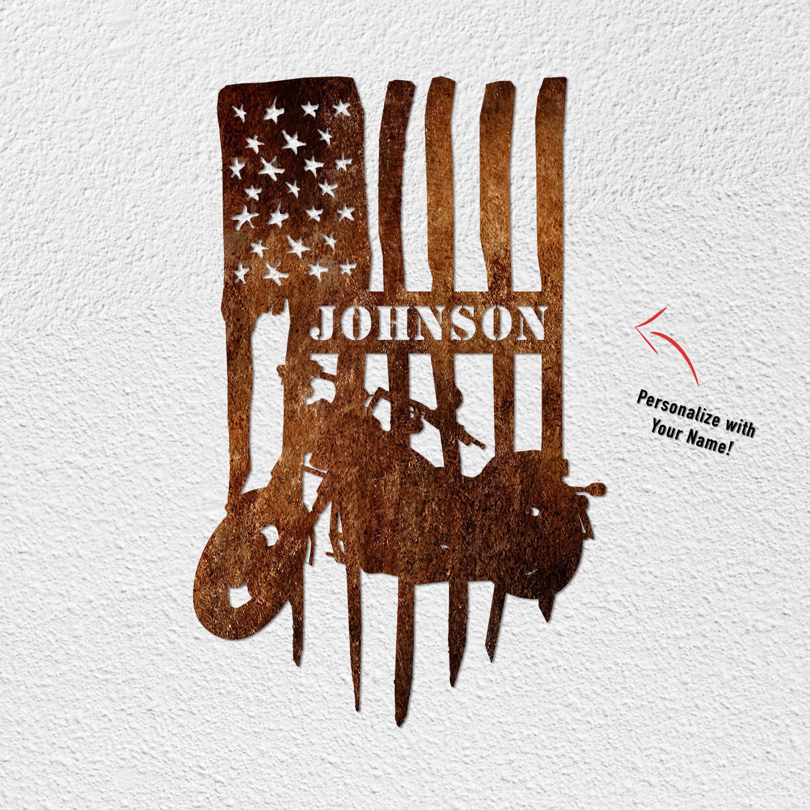 PERSONALIZED Gift For Biker – Metal Wall Art – Patriot Flag With Family Name
