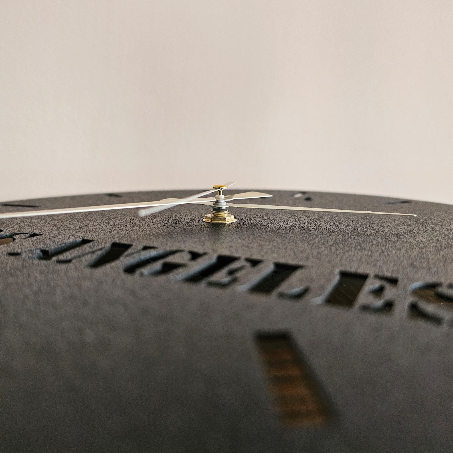 Silent Modern Wall Clock Set surface is finished with a textured matte black paint.