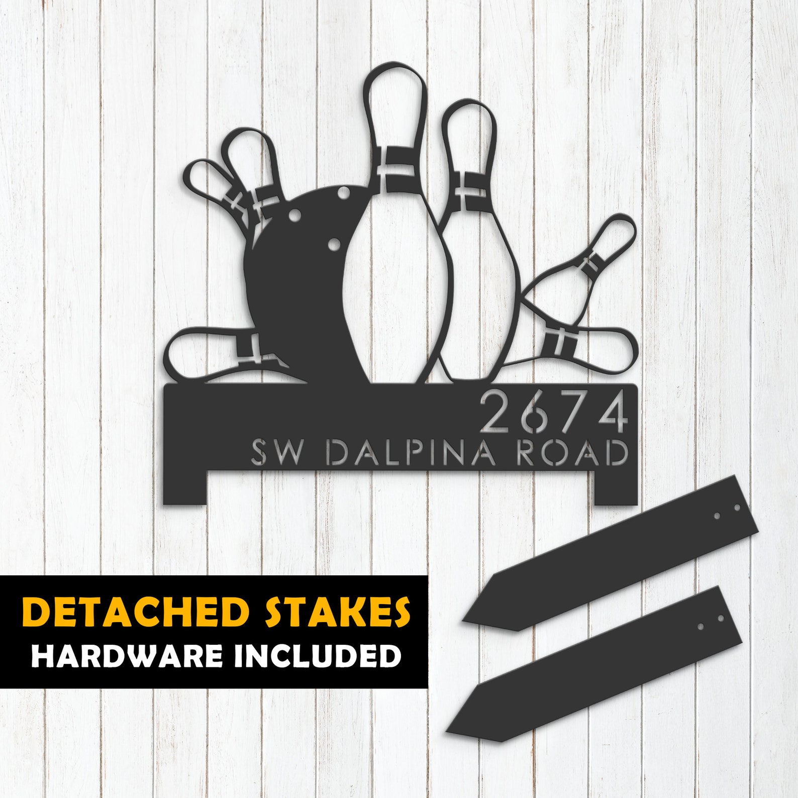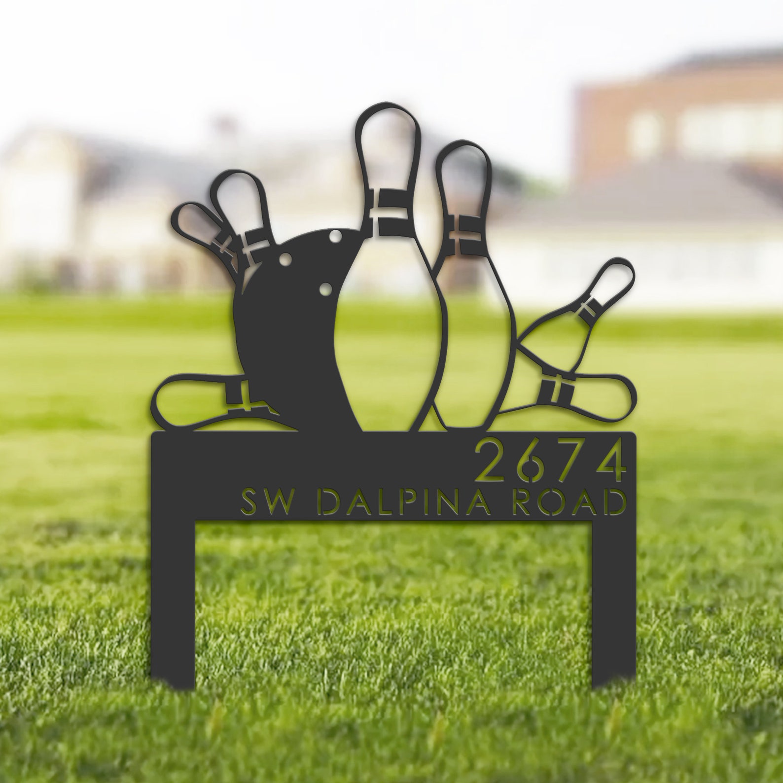 Be the first to review “Personalized Bowling Metal Address Plaque – Outdoor Yard Sign”