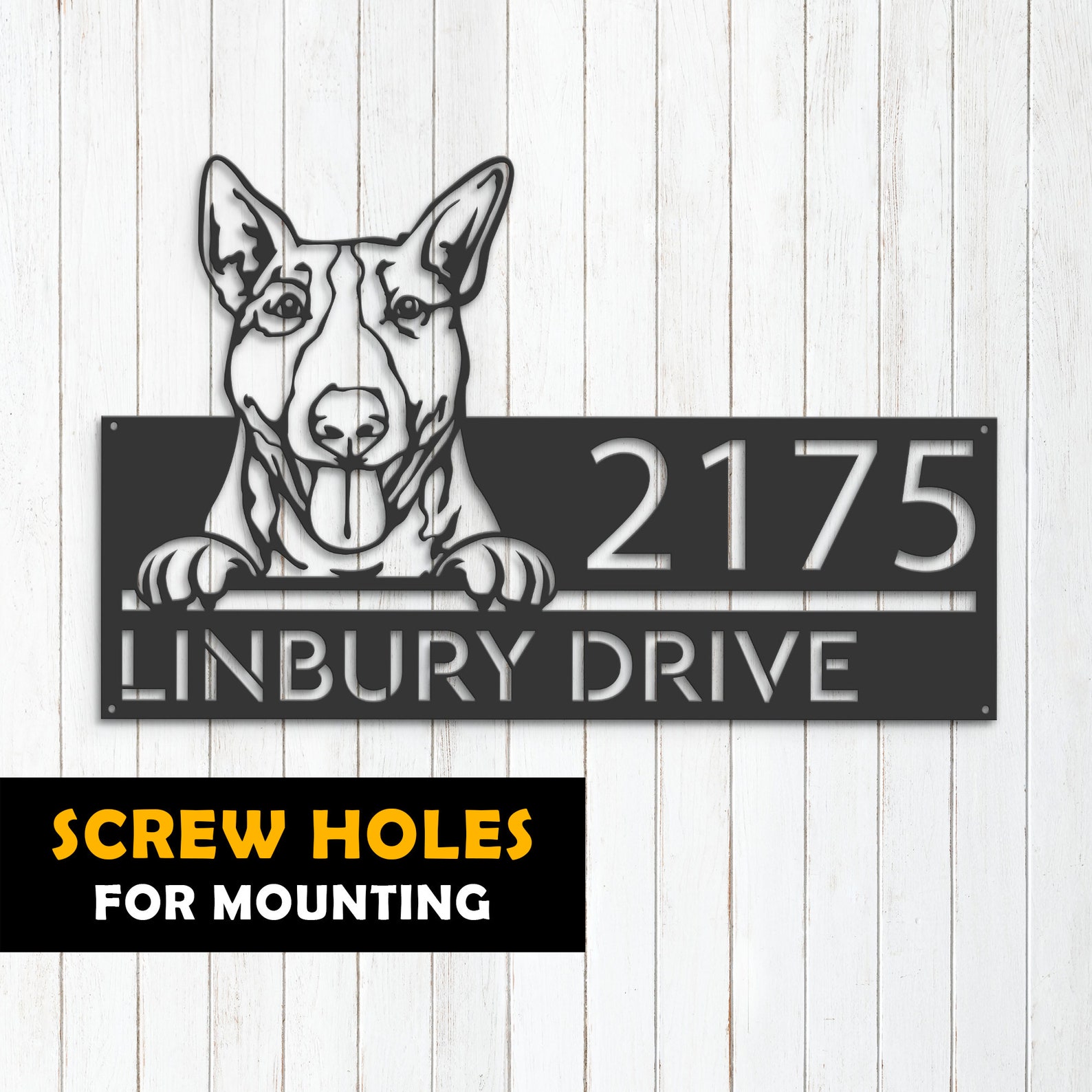Be the first to review “Personalized Bull Terrier Metal Address Sign”