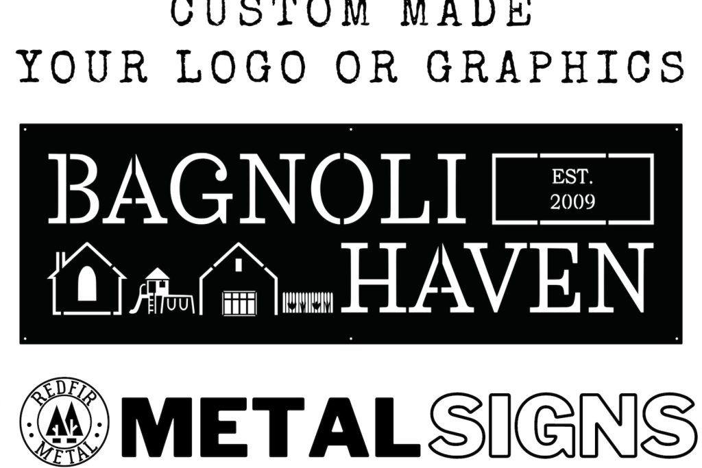 Custom made metal sign with your logo or artwork. Perfect metal decor idea to spruce up your office or storefront! We can personalize metal into any shape and size; square signs, rectangular, circle signs, or special shapes. Completely personalize the metal artwork; street address, family name, wedding day, business logo, etc… to suit your requirements.