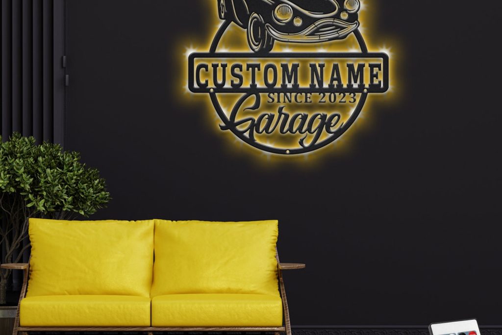 Be the first to review “Personalized Car Garage Name Metal Sign with LED Light”