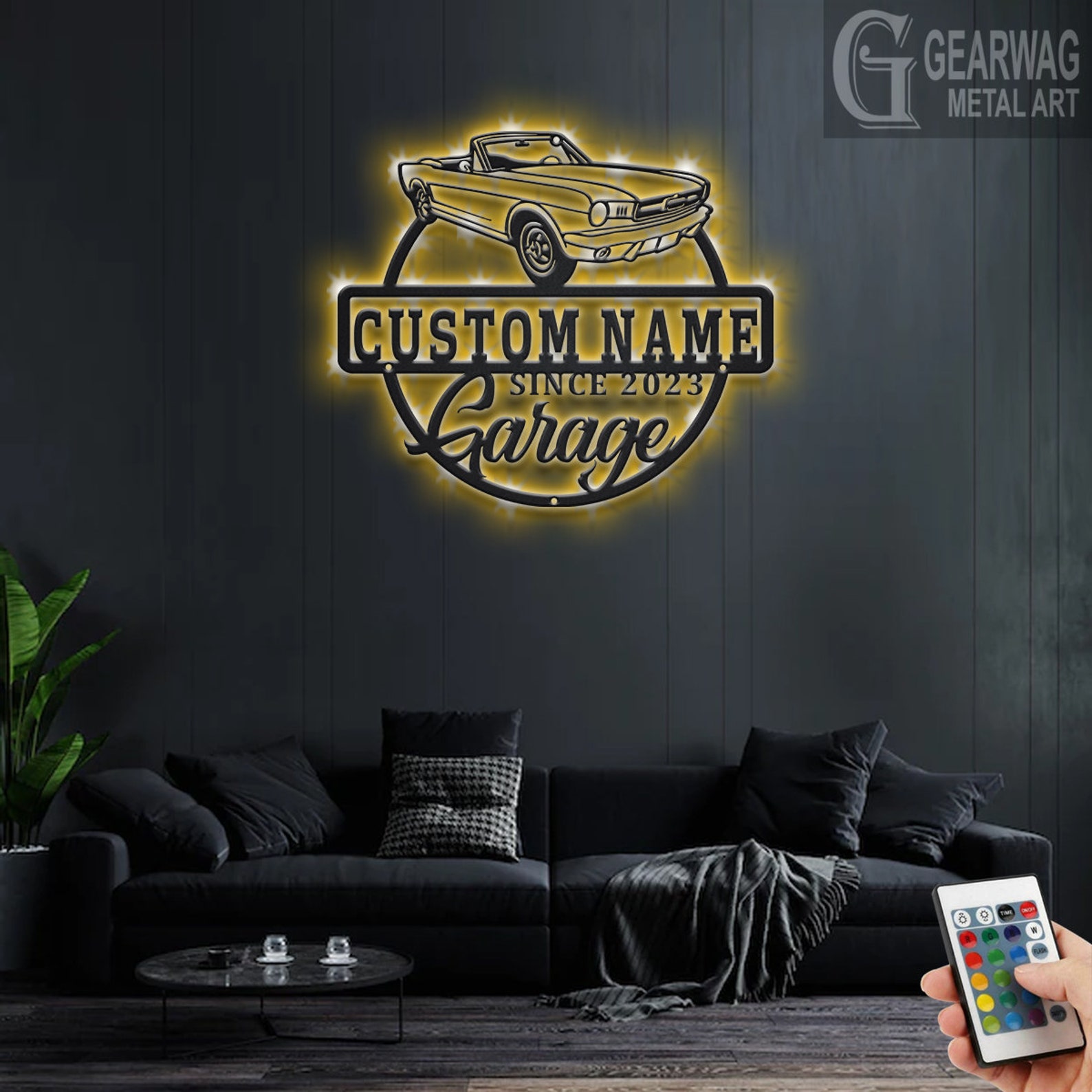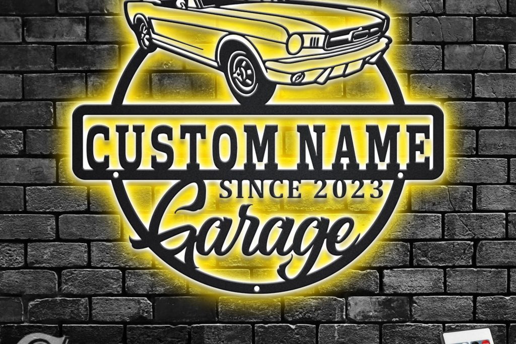 Personalized Car Garage Name Sign with LED Light