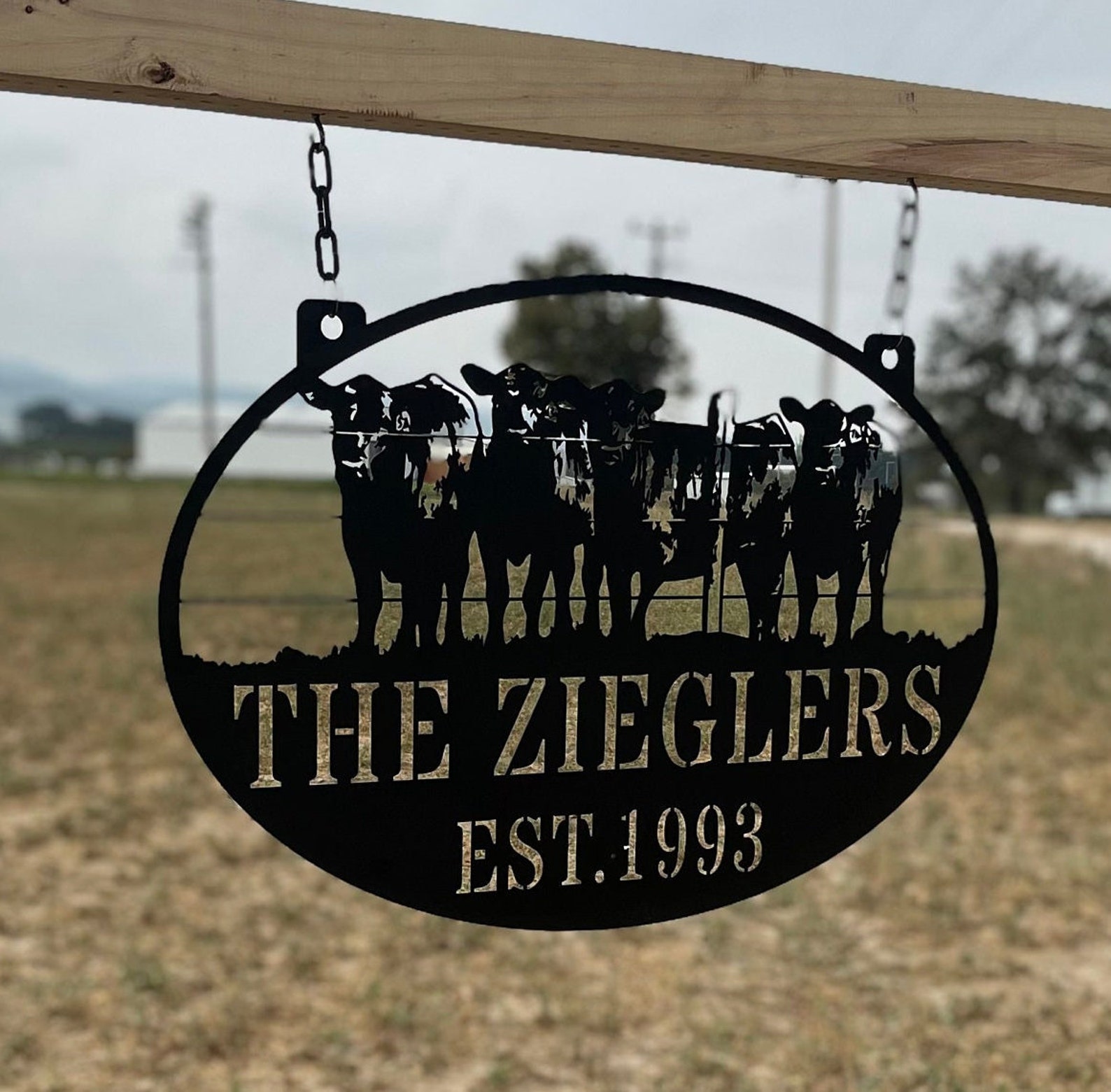 Personalized Cattle Farm Sign, Metal Sign Personalized, Metal Sign, Metal sign Cattle, Cattle farm, Family Sign, South Poll Grass Cattle