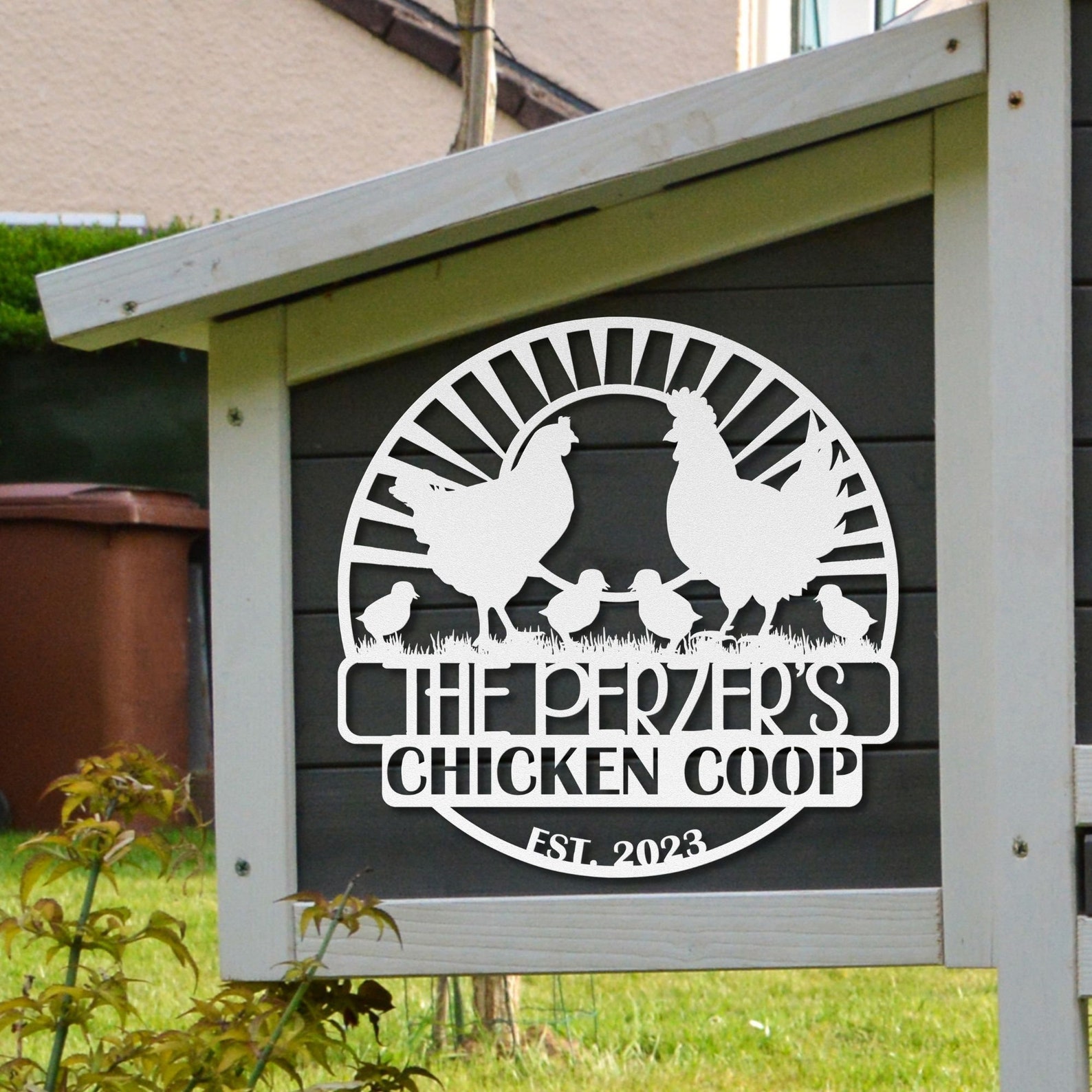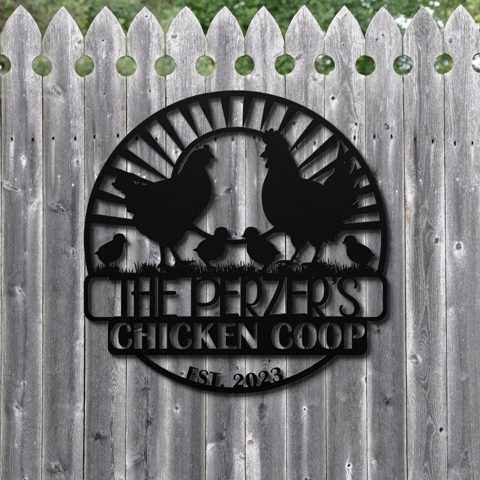 Elevate your farmhouse dcor with our custom-made chicken coop metal sign. This rustic masterpiece is handcrafted to perfection and can be personalized with your family name for a truly unique touch.