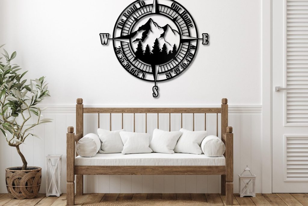 Personalized Compass Coordinates Sign, Nautical Decor