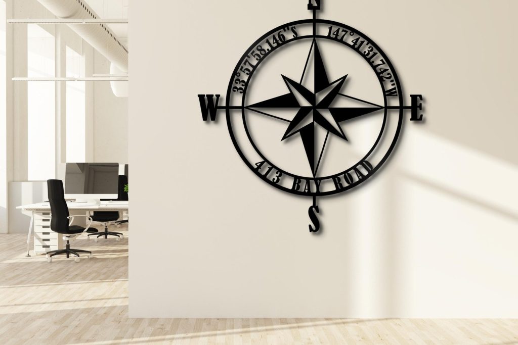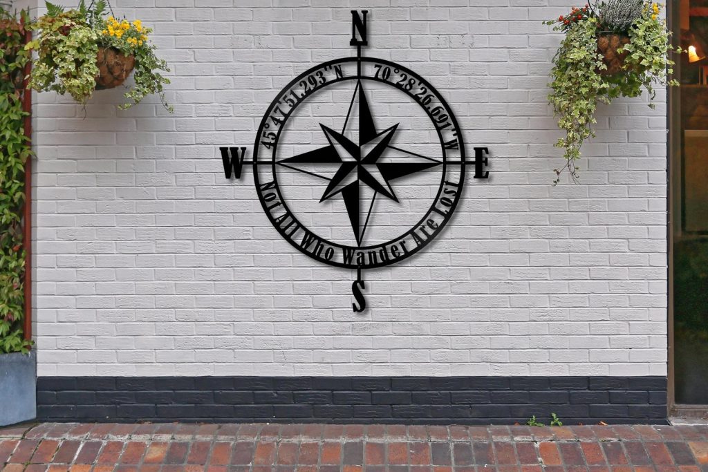 Personalized Compass Rose Metal Wall Art with Coordinates