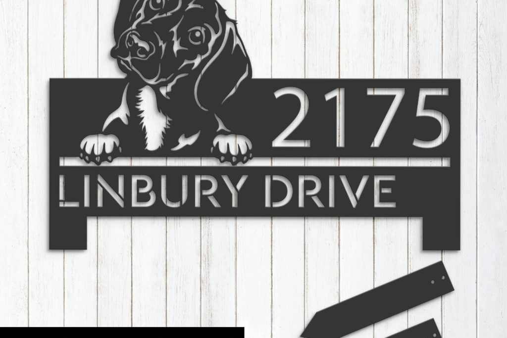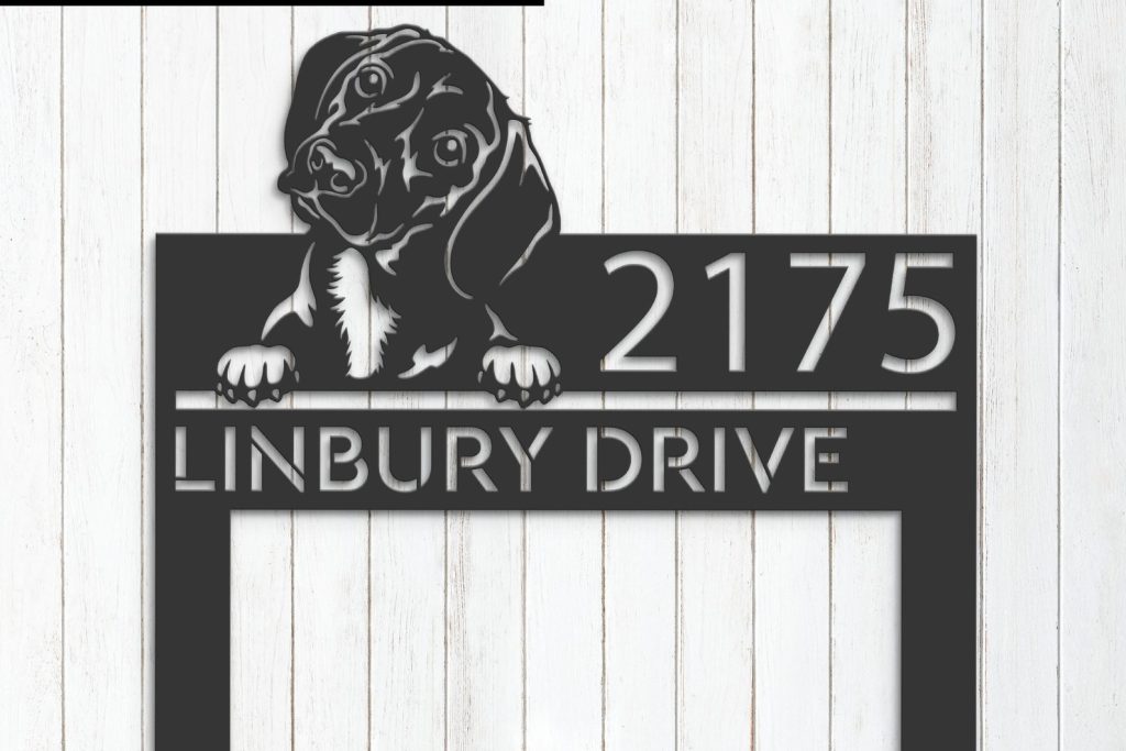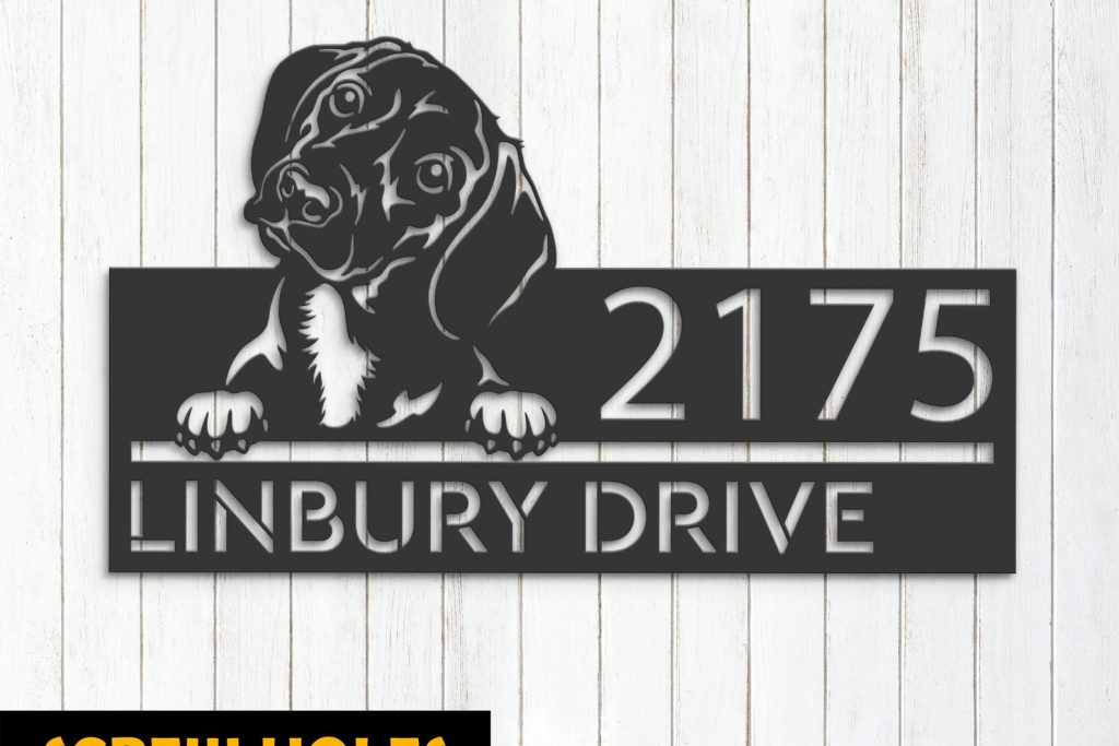 Personalized Dachshund Metal Address Sign with Hanging Plaque