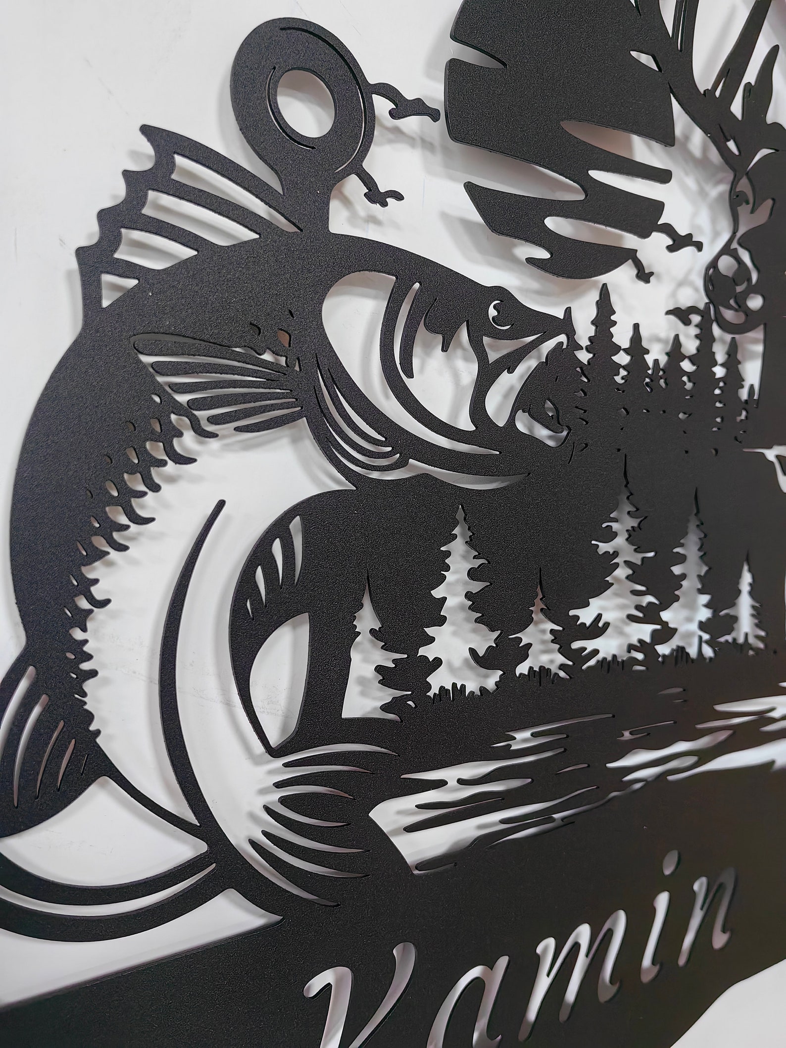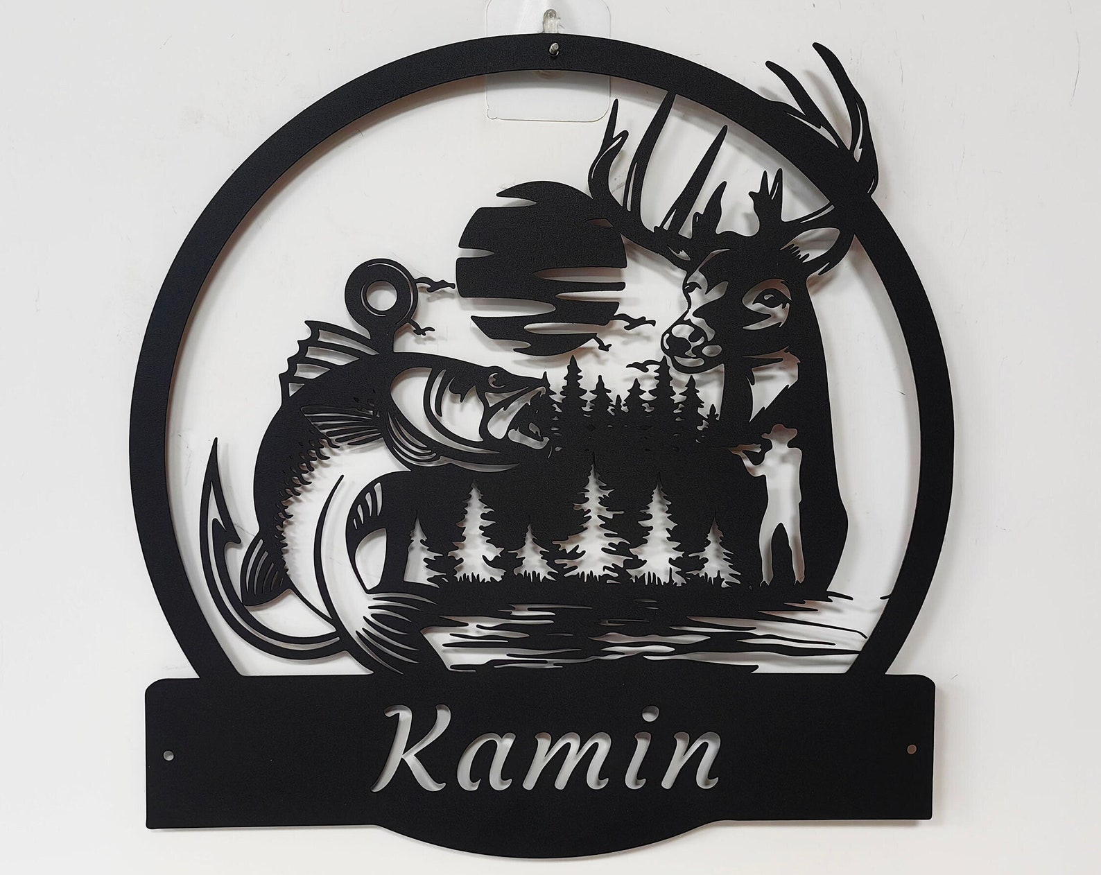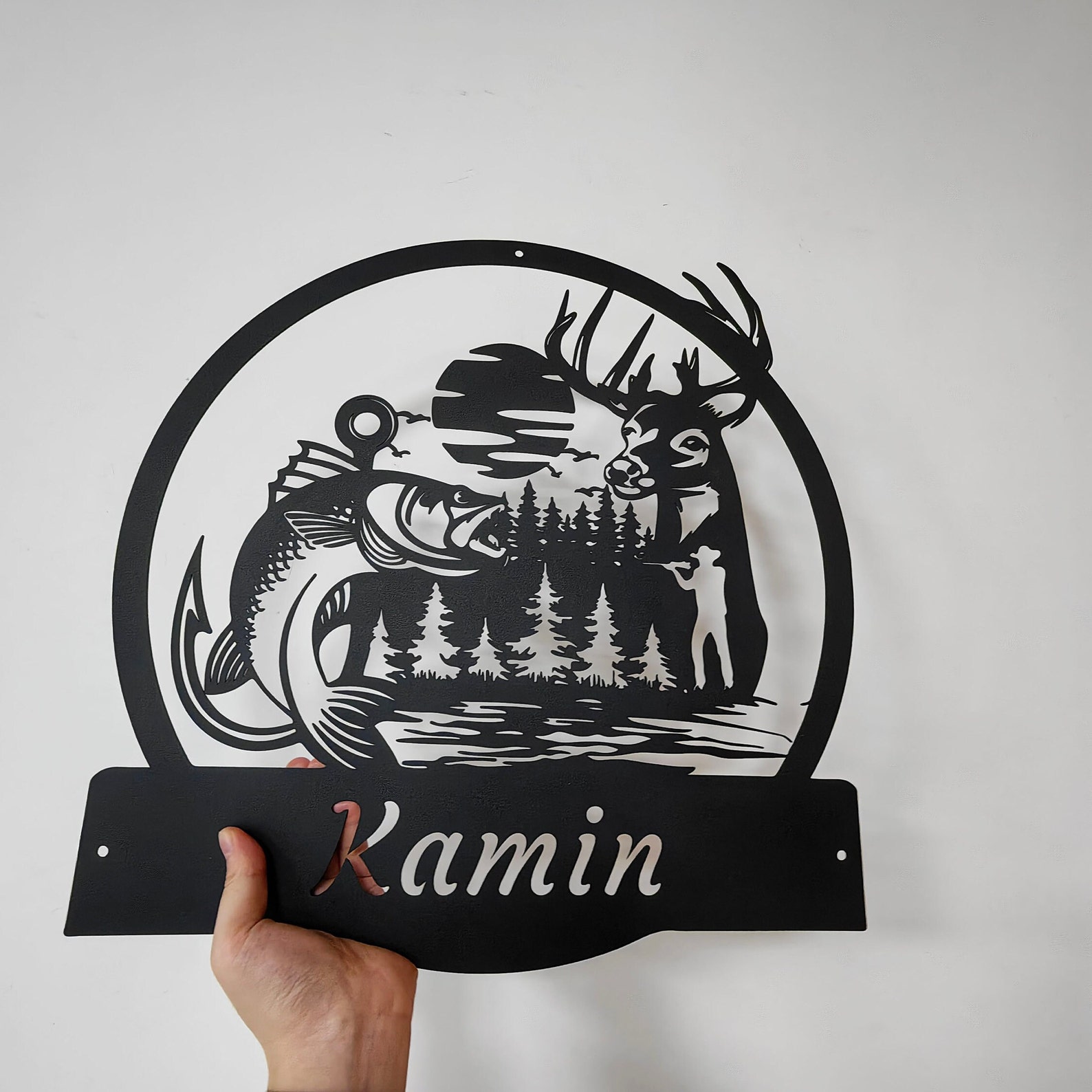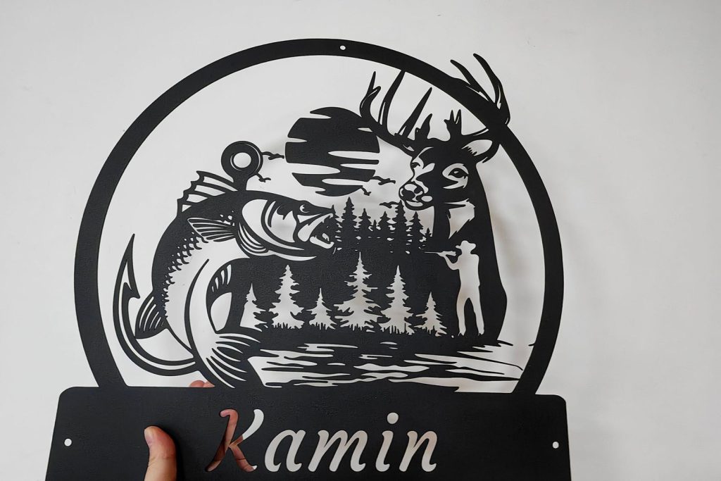 -Custom Deer And Fishing Metal Wall Art-