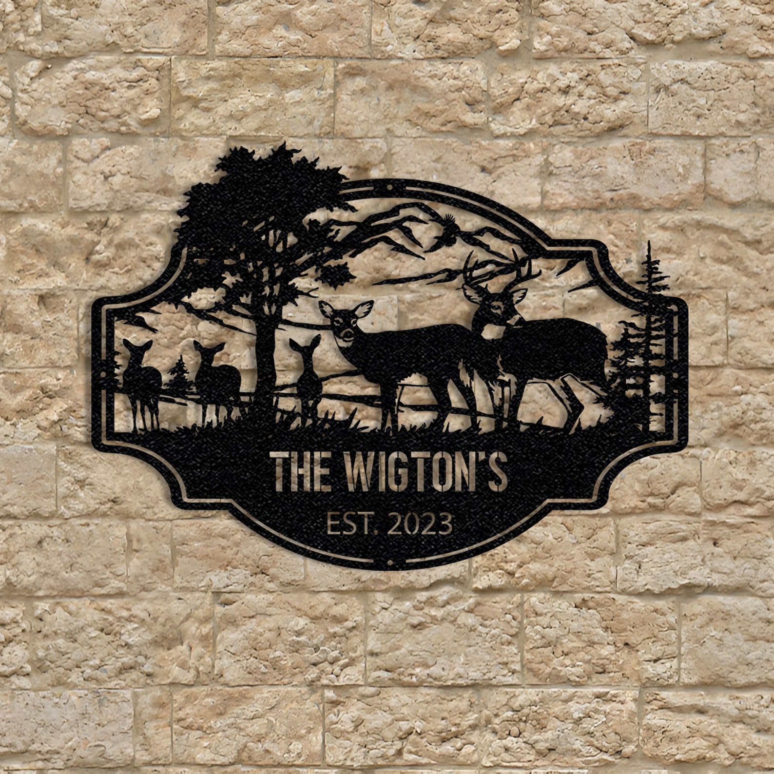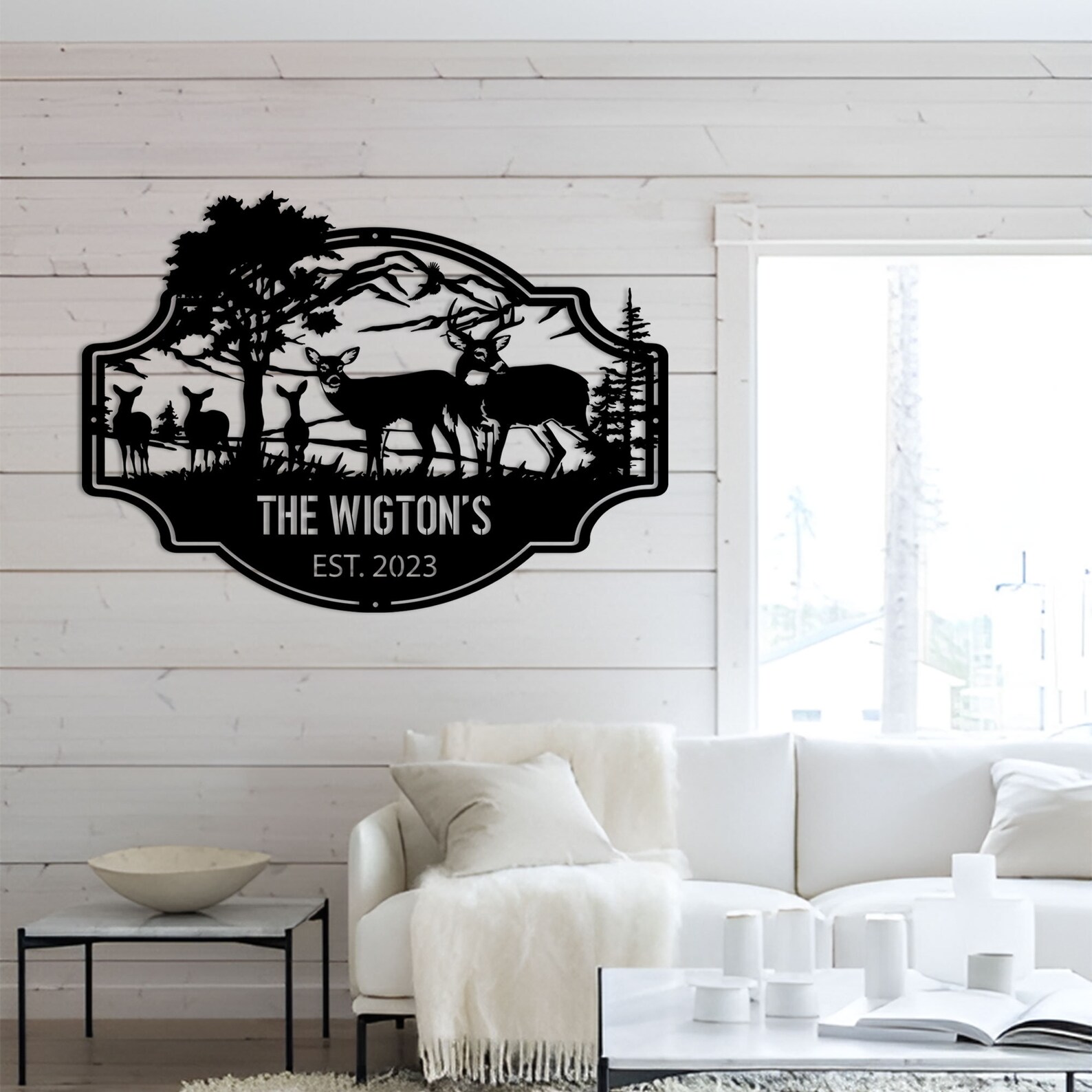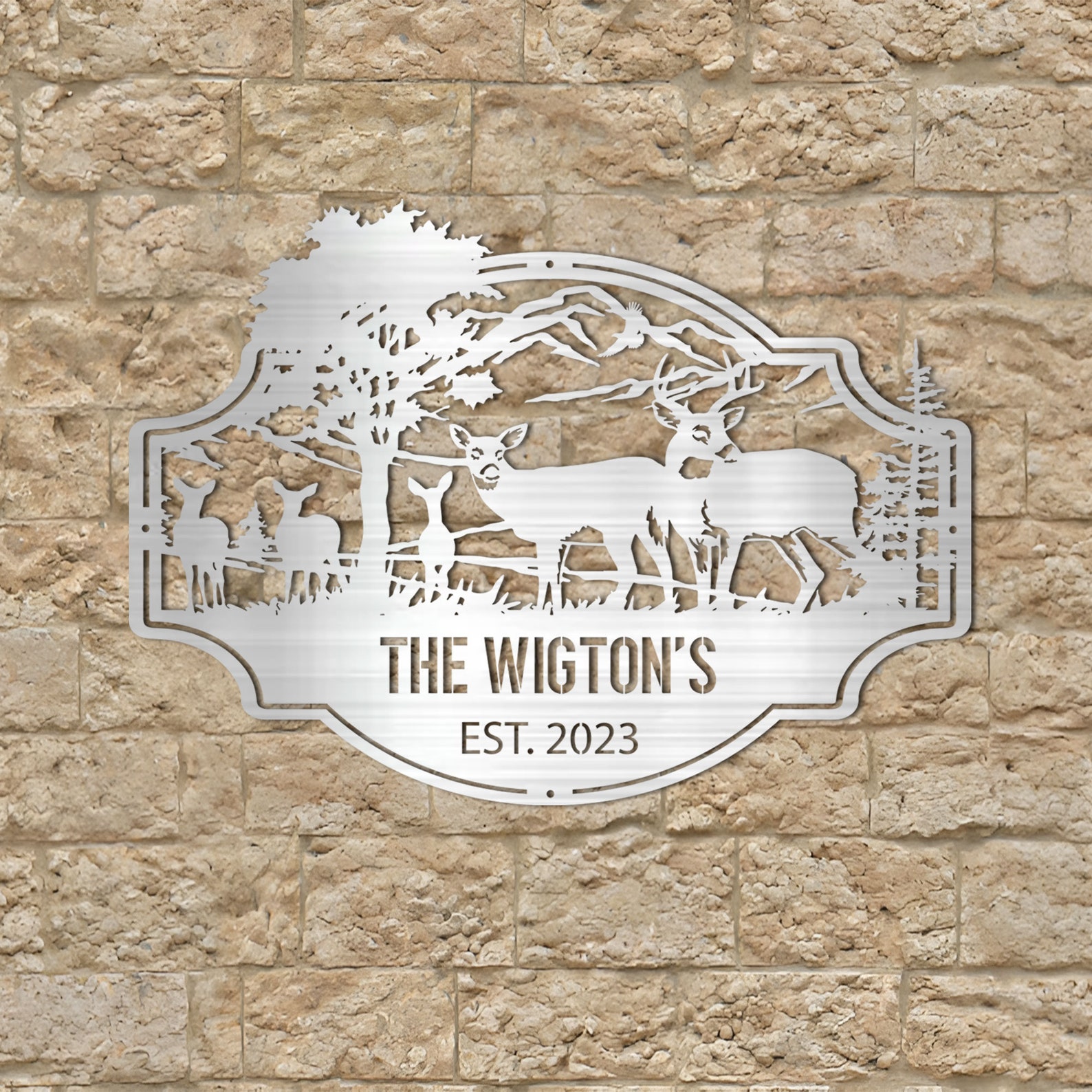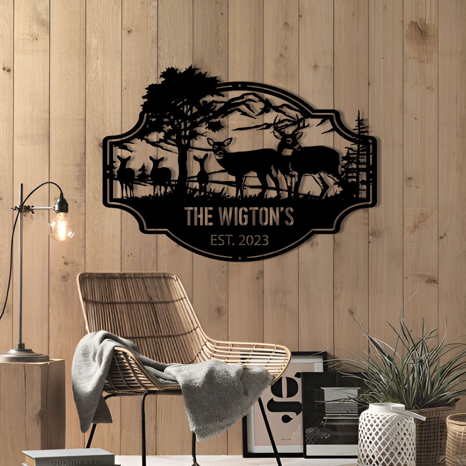 Last Name Signs for Home,Deer Forest Custom Metal Name Signs Personalized,Metal Outdoor Signs,Deer Hunter Sign,Hunter Gifts,Christmas gift