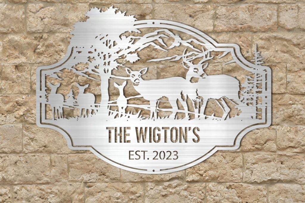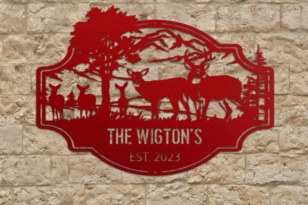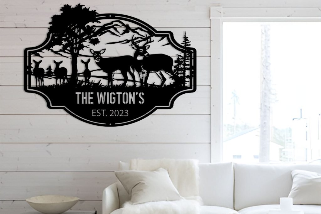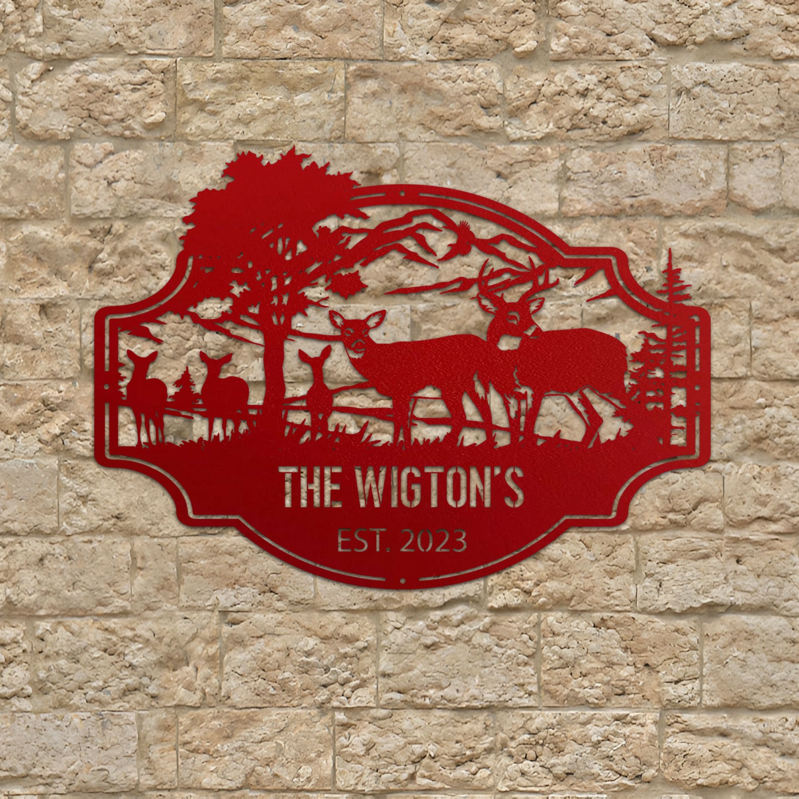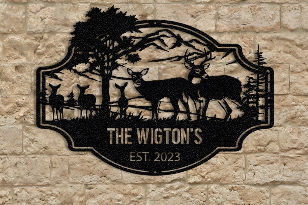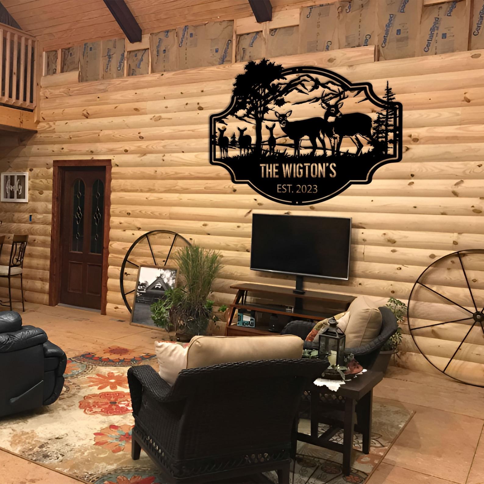 Last Name Signs for Home,Deer Forest Custom Metal Name Signs Personalized,Metal Outdoor Signs,Deer Hunter Sign,Hunter Gifts,Christmas gift